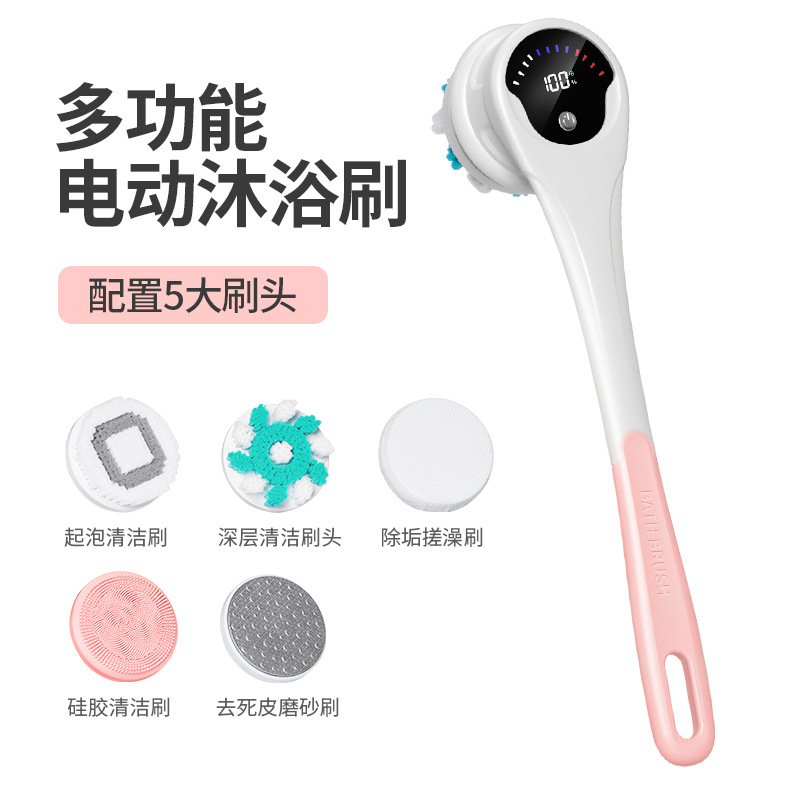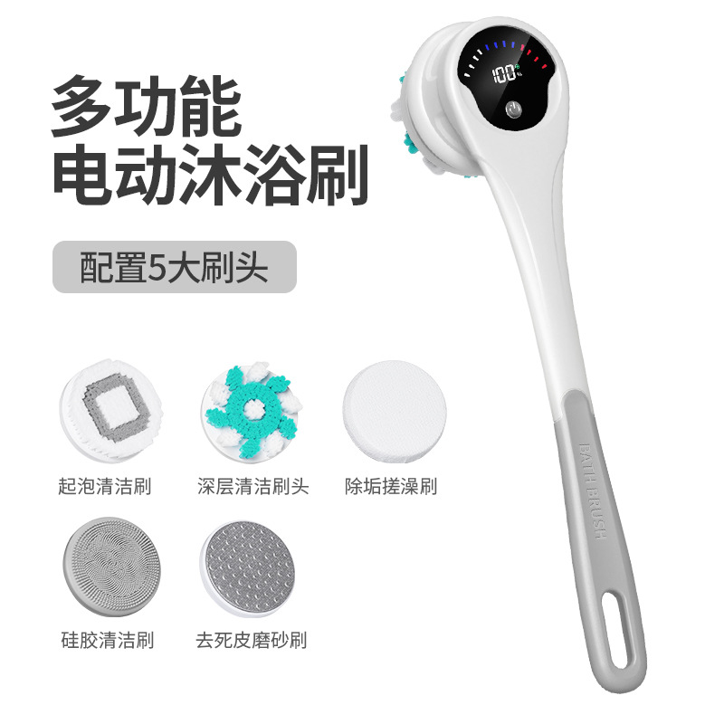 국경 간 긴 손잡이 전기 목욕 브러시 5-in-1 가정용 자동 목욕 브러시 게으른 사람들을위한 휴대용 마사지 목욕 청소 브러시