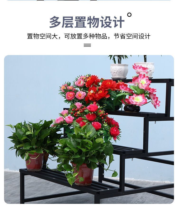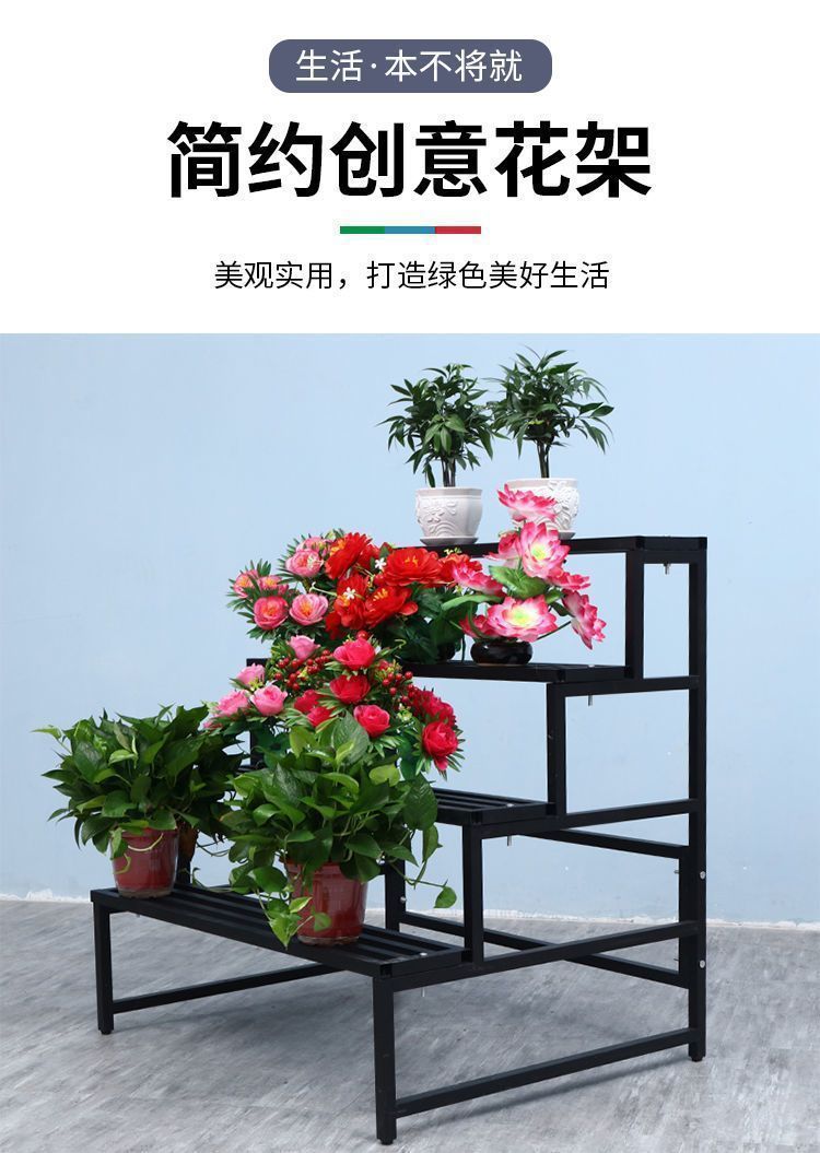 발코니 꽃 선반 바닥에 붙은 다층 계단식 방수 및 녹 방지 안뜰 다육 실내 및 실외 철 꽃 선반스토어 가기