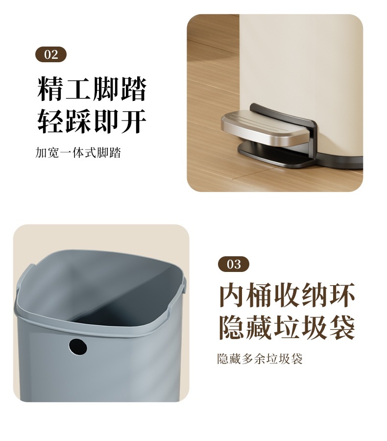• 20L 시멘트 그레이 [두꺼워진 베이스/내외 이중통/저소음 저속 하강] 거실/주방