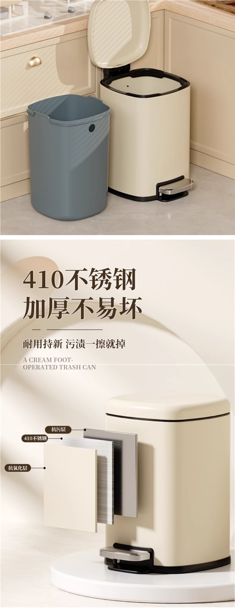 휴지통 수 가정용 스테인레스 스틸 거실 조명 고급 침실 주방 대용량 욕실 뚜껑 페달 타입 높은 외관