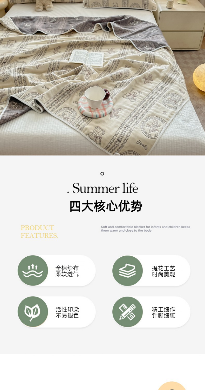 2025 신형 순면 6겹 거즈 수건 이불 여름 이불 여름 시원한 이불 에어컨 이불 담요 순면 여름 이불스토어 가기