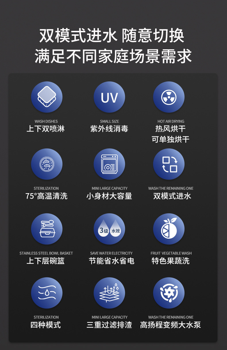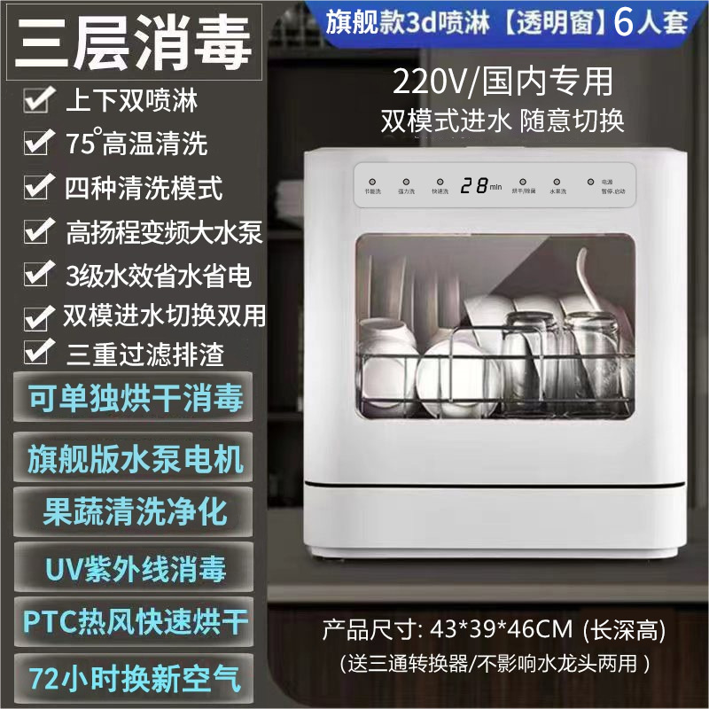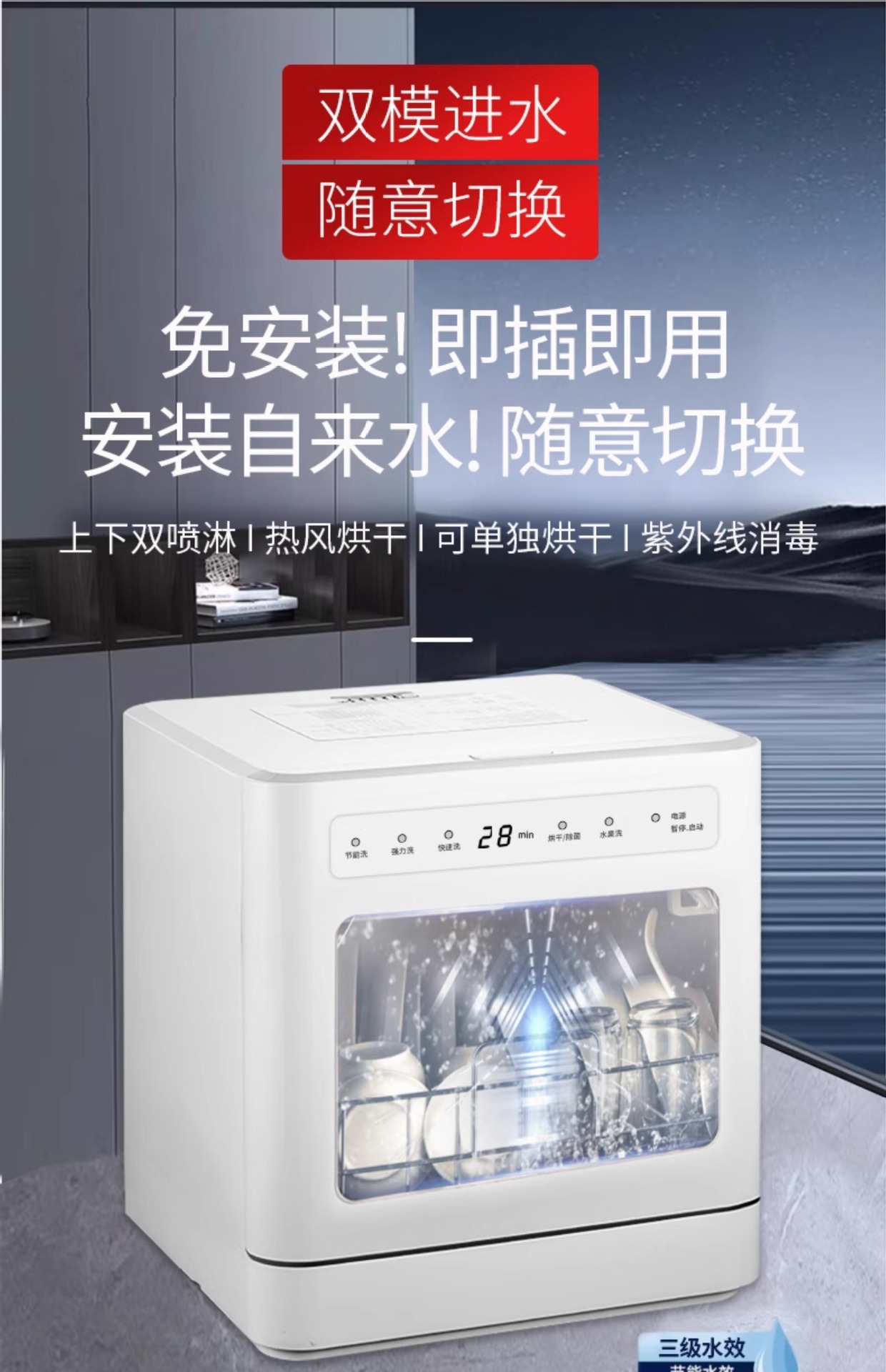2024 새로운 식기 세척기 가정용 데스크탑 소형 완전 자동 설치가 필요없는 듀얼 모드 물 입구는 독립적으로 건조 가능 110V스토어 가기