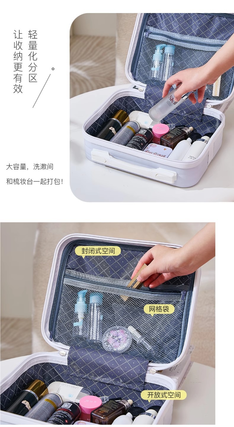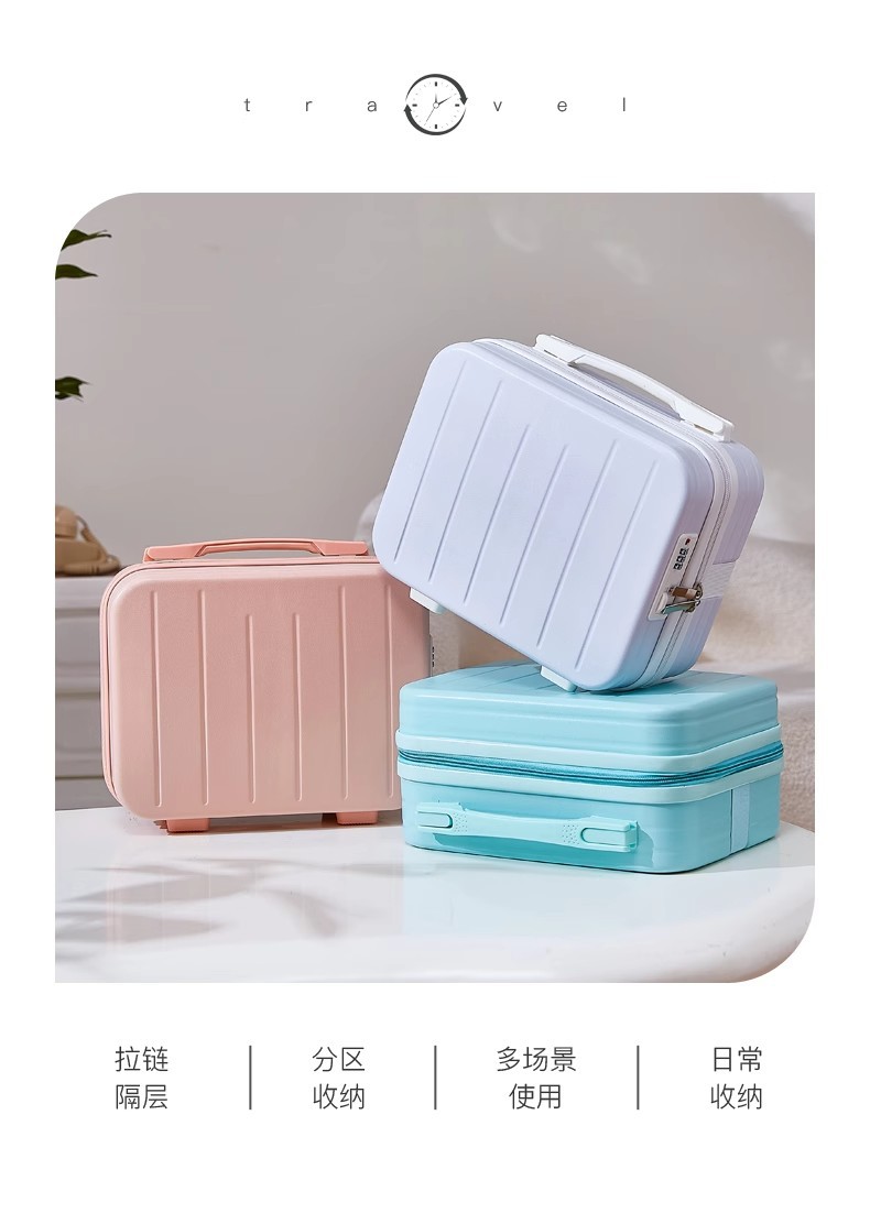 화장품 케이스 새로운 14 인치 휴대용 소형 교수형 수하물 케이스 조합 잠금 화장품 가방 보관 케이스 내마모성 및 경량스토어 가기