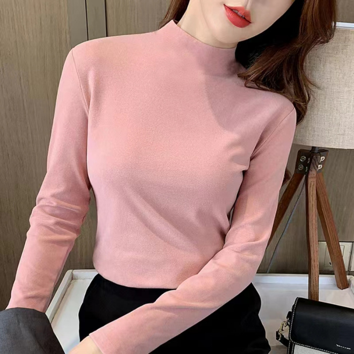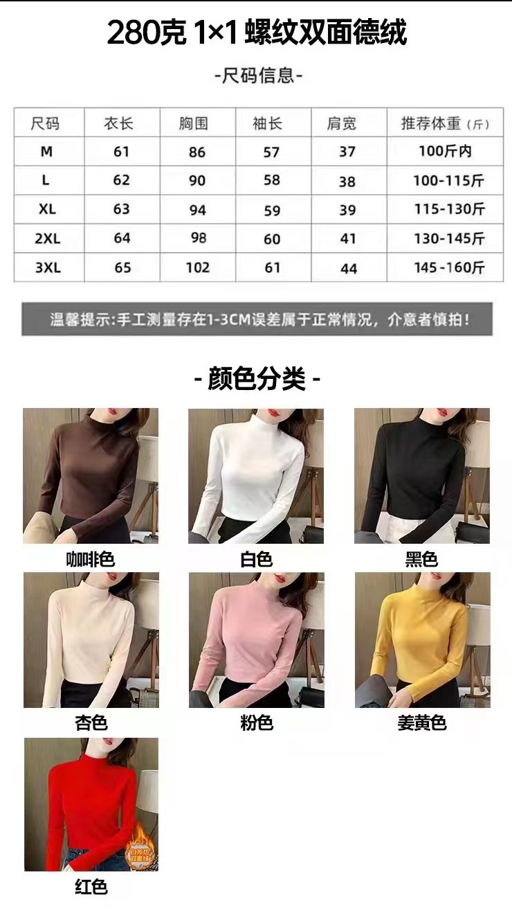 280 kedel [좋은 품질] 양면 kedel 세미 하이 칼라 바닥 셔츠 여성의 겨울 착용 2025 가을과 겨울 기모스토어 가기