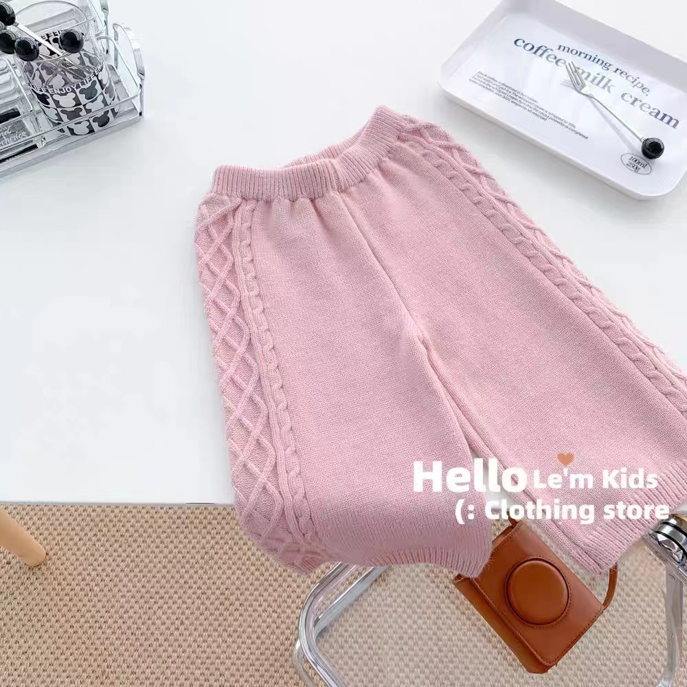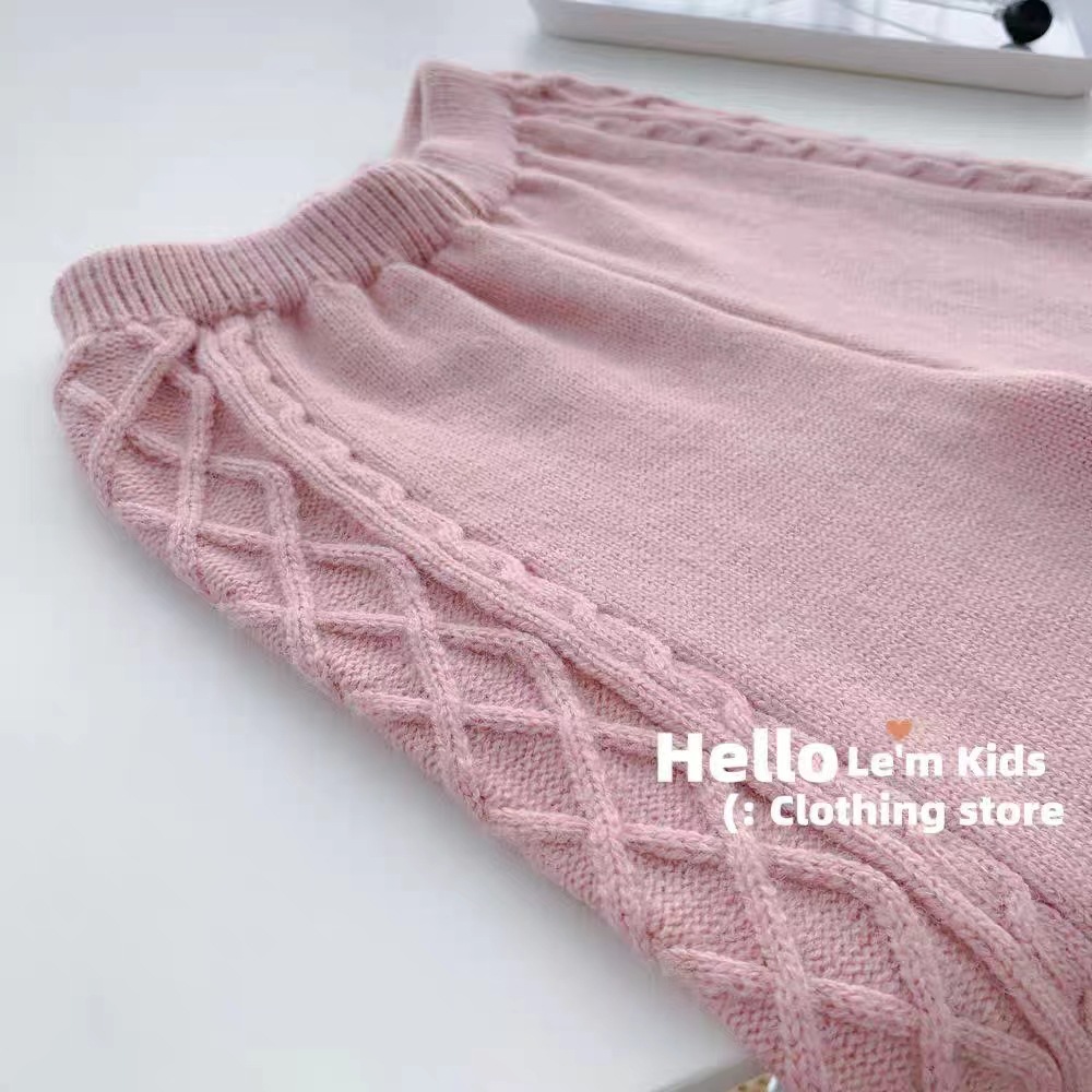 한국 아동복 가을과 겨울 외국 스타일의 하트 소녀 복고풍 기질 패션 단색 니트 스웨터 울 바지 투피스 세트스토어 가기