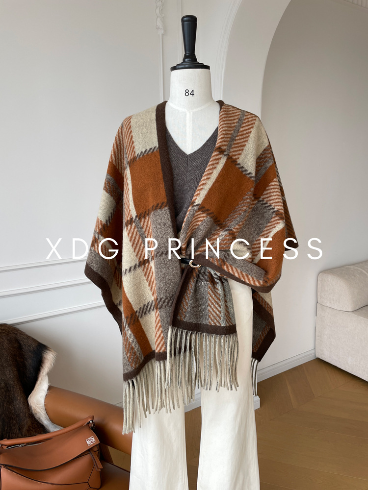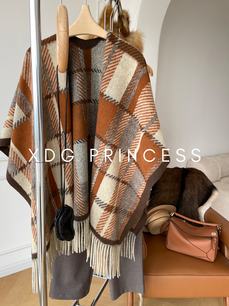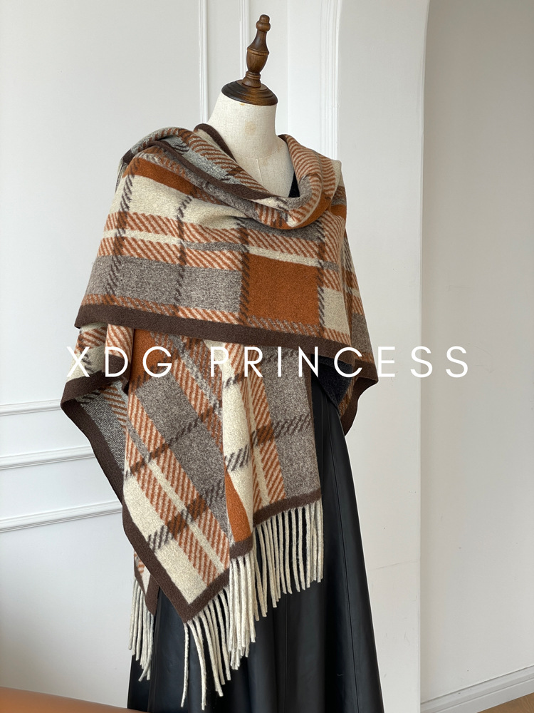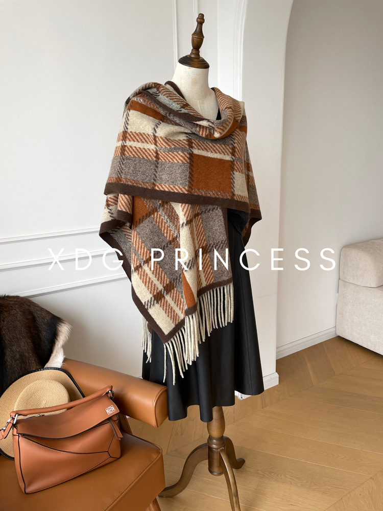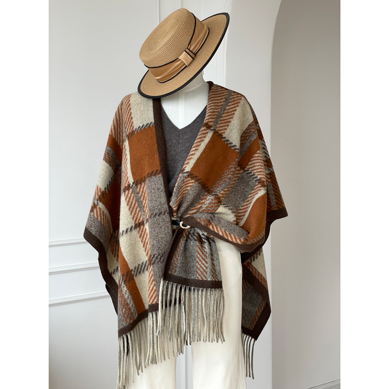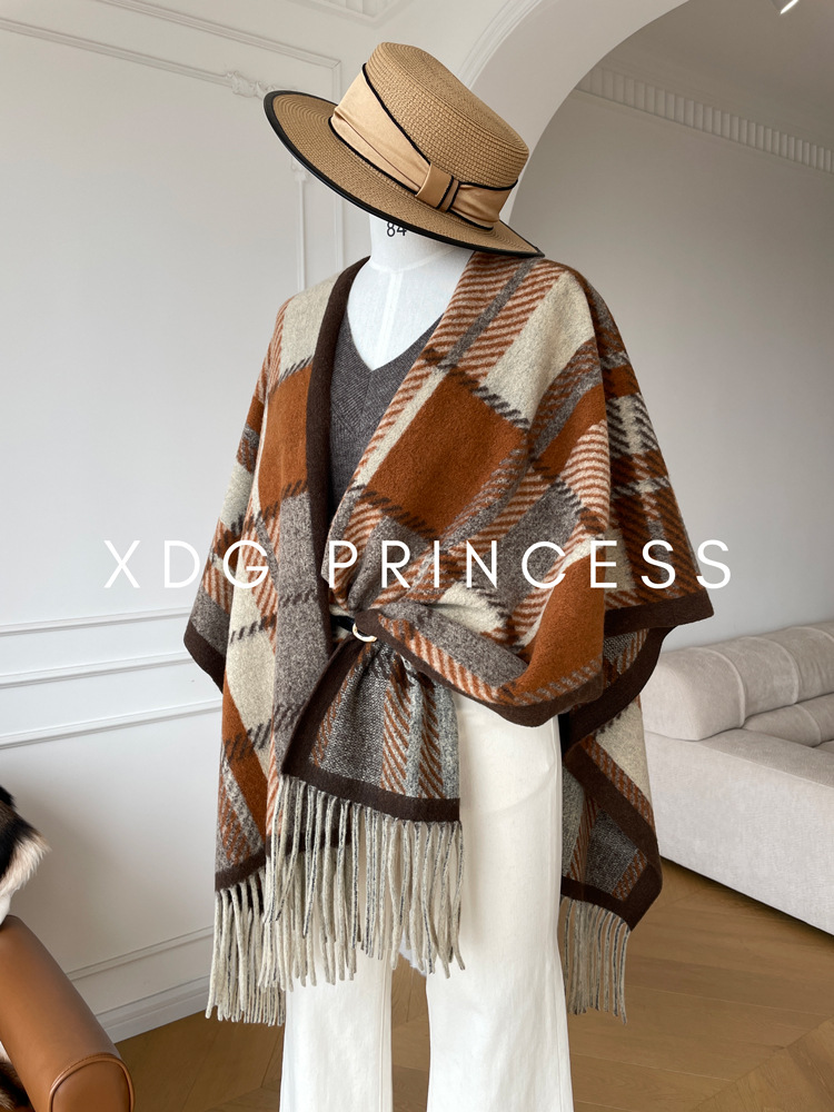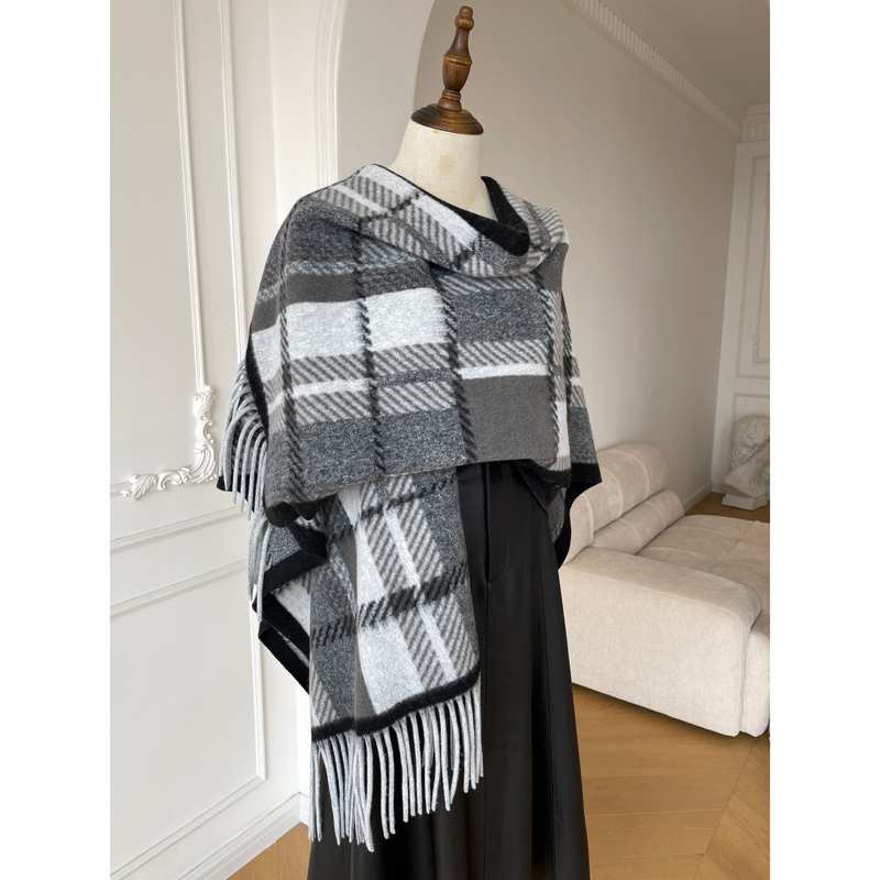 고급 우아한 격자 무늬 따뜻한 목도리 여자 봄 가을과 겨울 외부 케이프 느슨한 한국 올 매치 탑