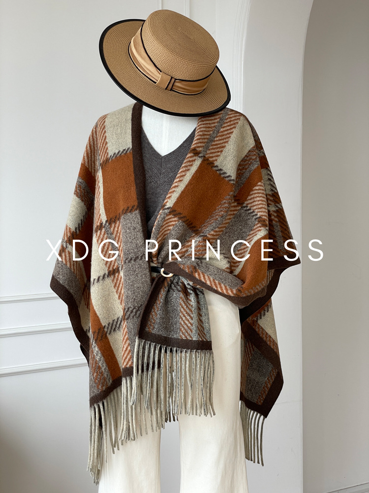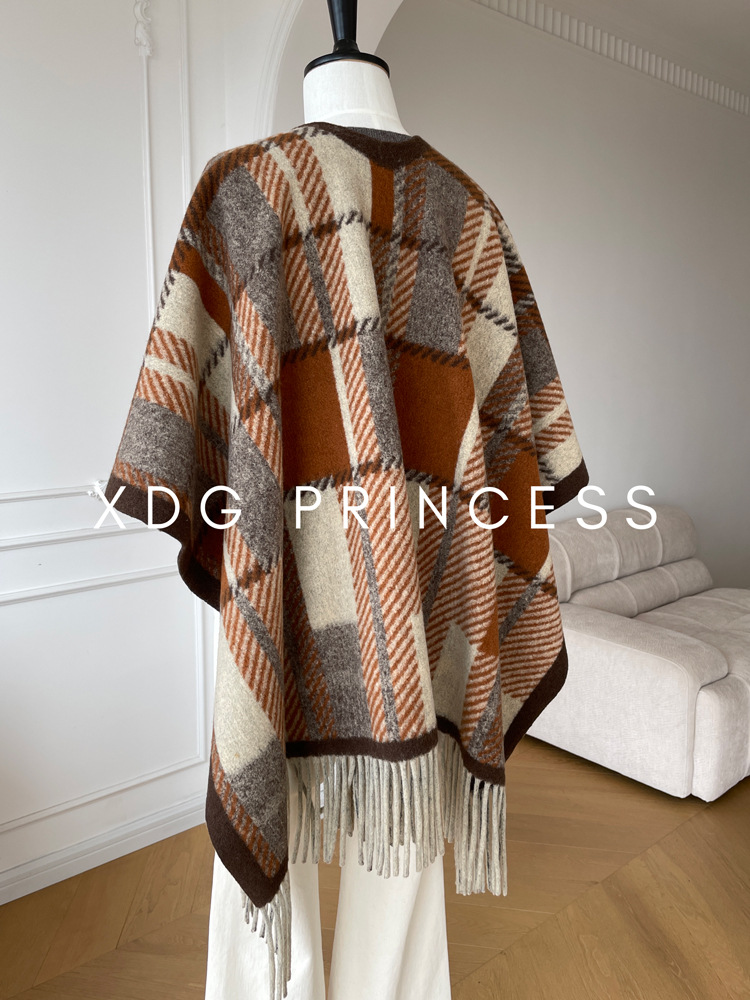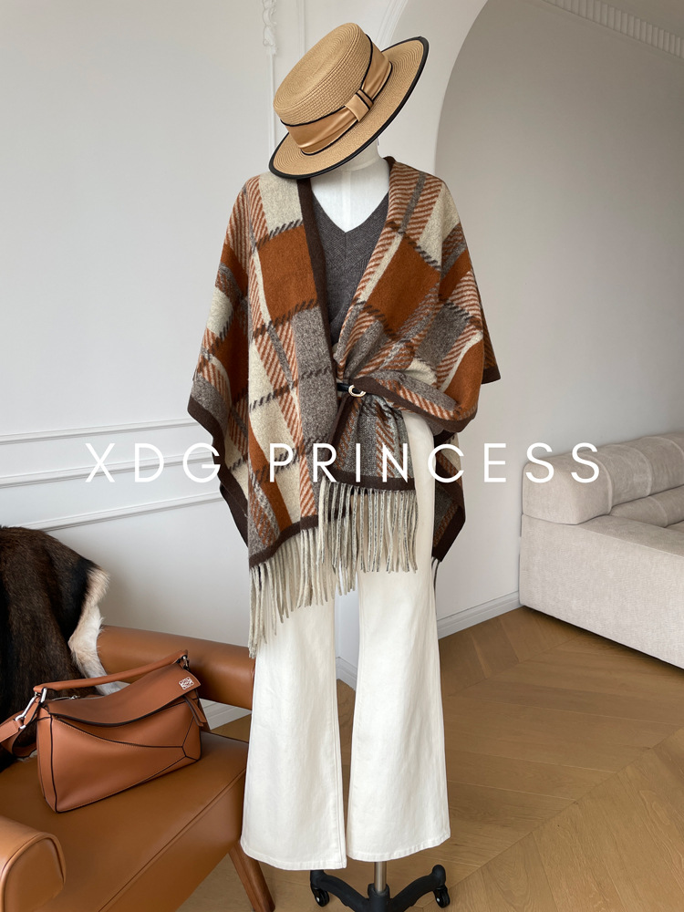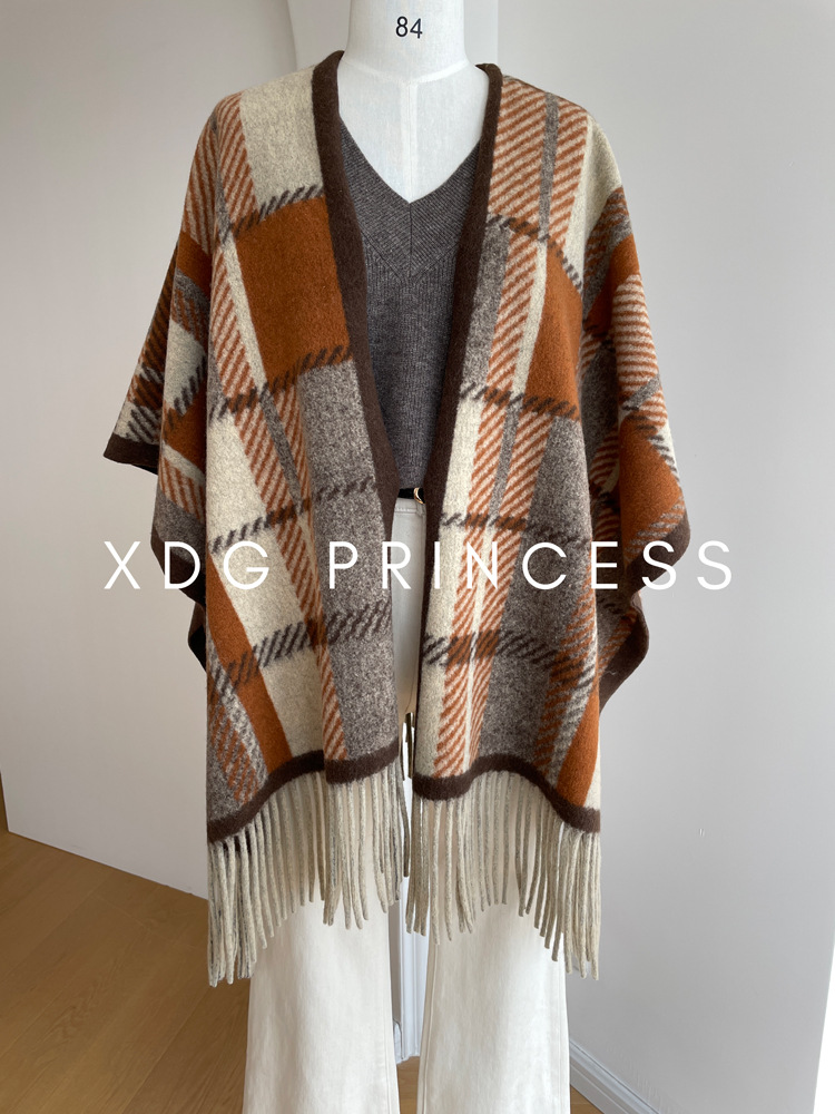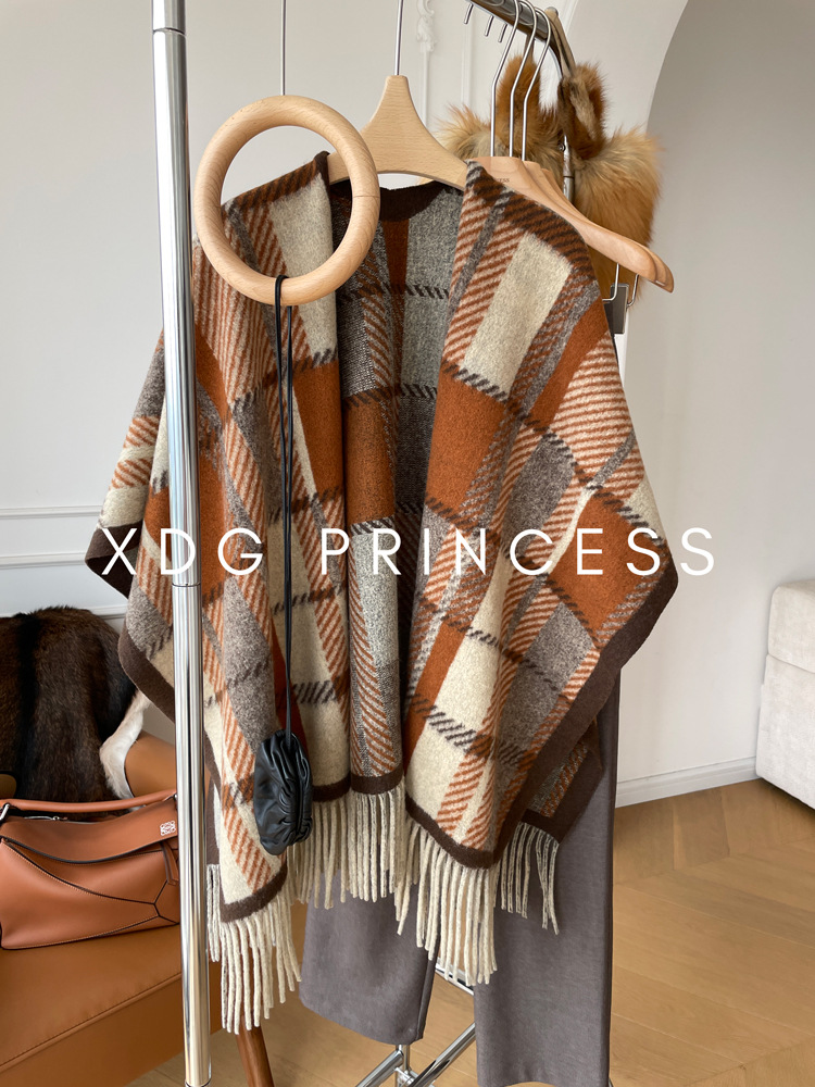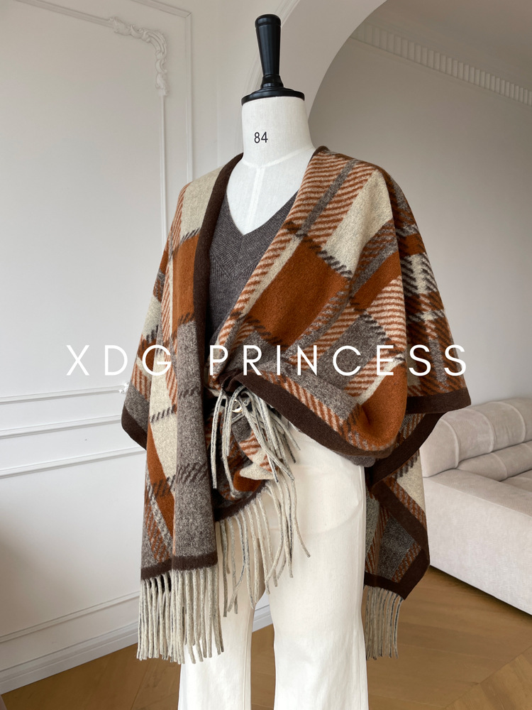 고급 우아한 격자 무늬 따뜻한 목도리 여자 봄 가을과 겨울 외부 케이프 느슨한 한국 올 매치 탑