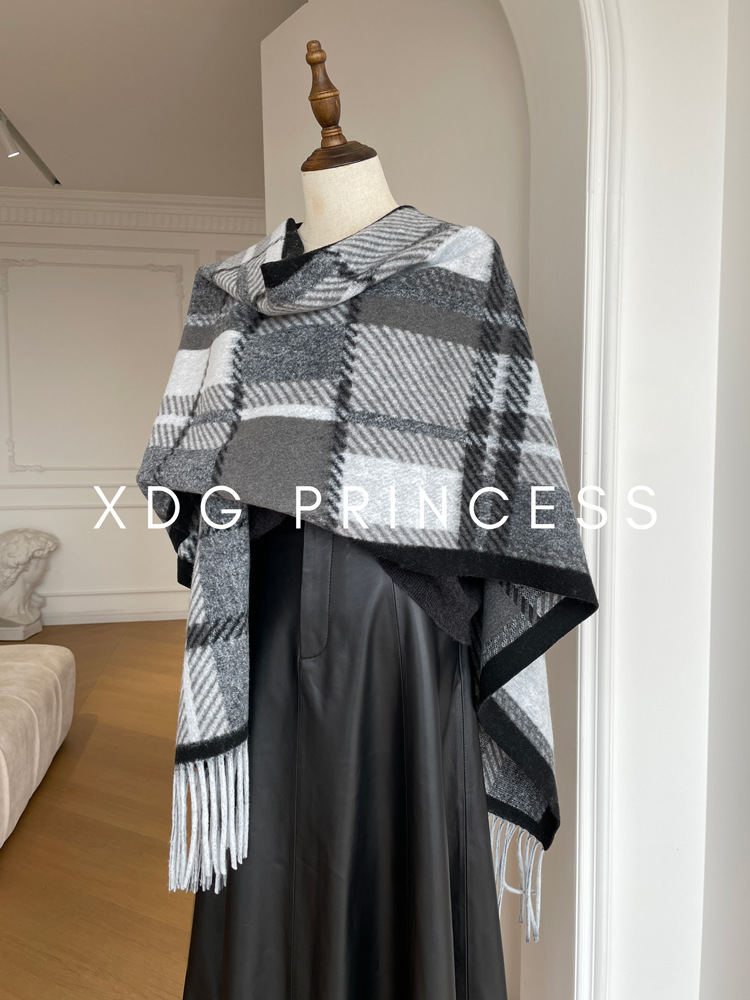 고급 우아한 격자 무늬 따뜻한 목도리 여자 봄 가을과 겨울 외부 케이프 느슨한 한국 올 매치 탑스토어 가기