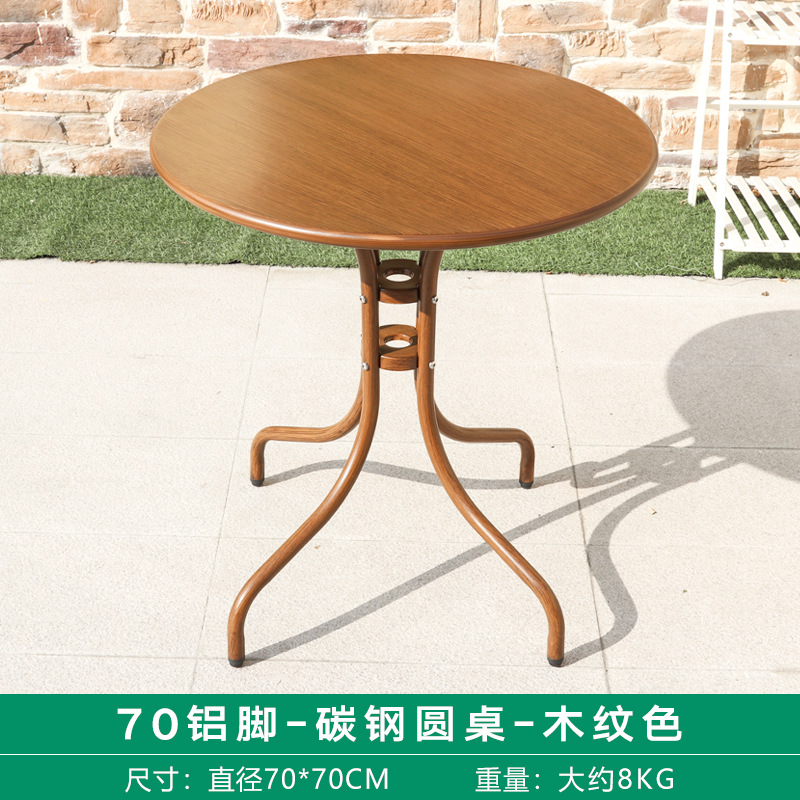 • 70 알루미늄 다리 - 탄소강 원형 테이블 - 나뭇결 색상 [사진 2장]