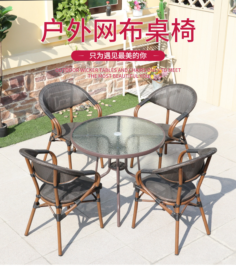 야외 등나무 테이블 및 의자 가구 호텔 PE 등나무 테이블 및 의자 안뜰 발코니 야외 레저 등나무 메시 의자스토어 가기