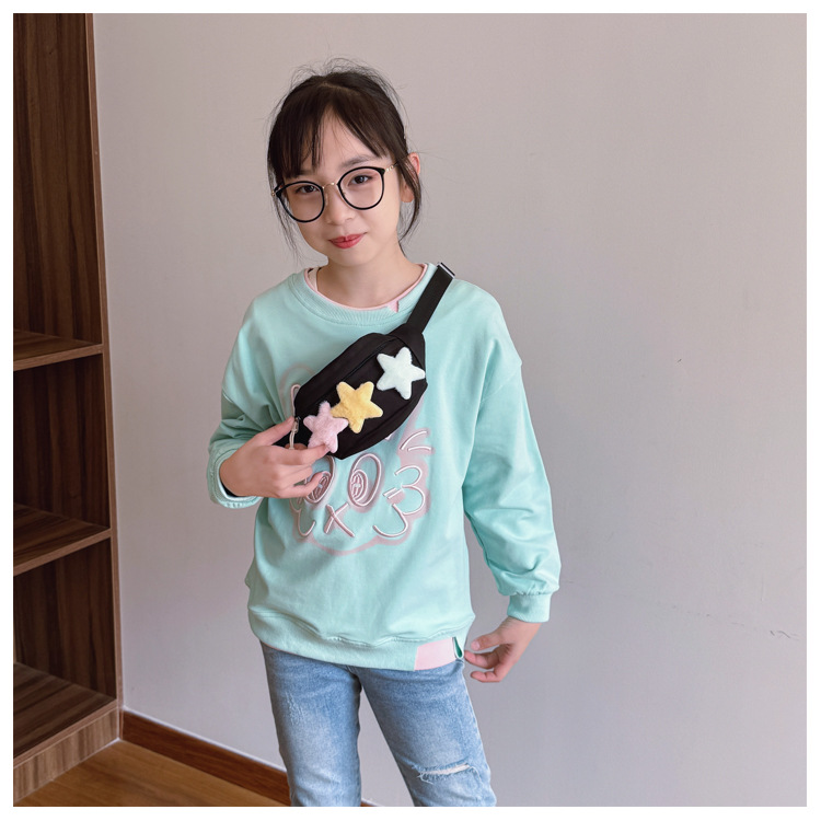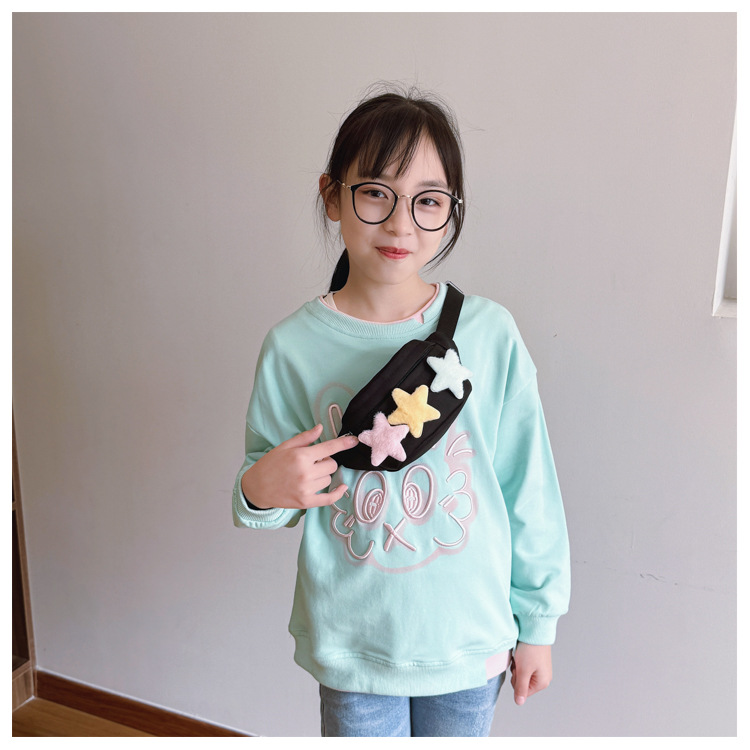 만화 귀여운 어린이 가방 다섯개 별 사탕 색 소년과 소녀 가방 가슴 가방 2025 봄 여행 아기 사첼스토어 가기