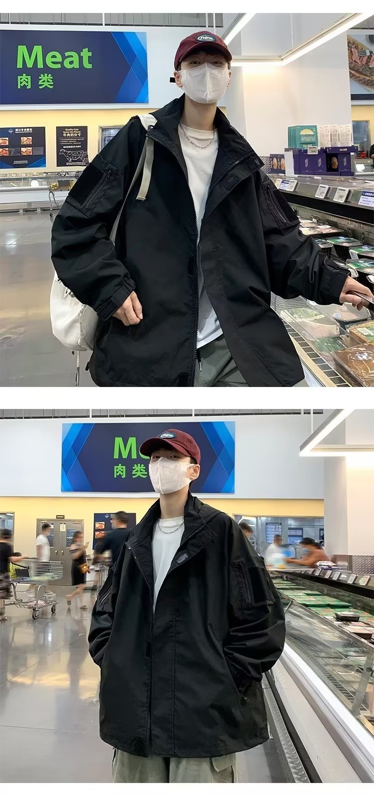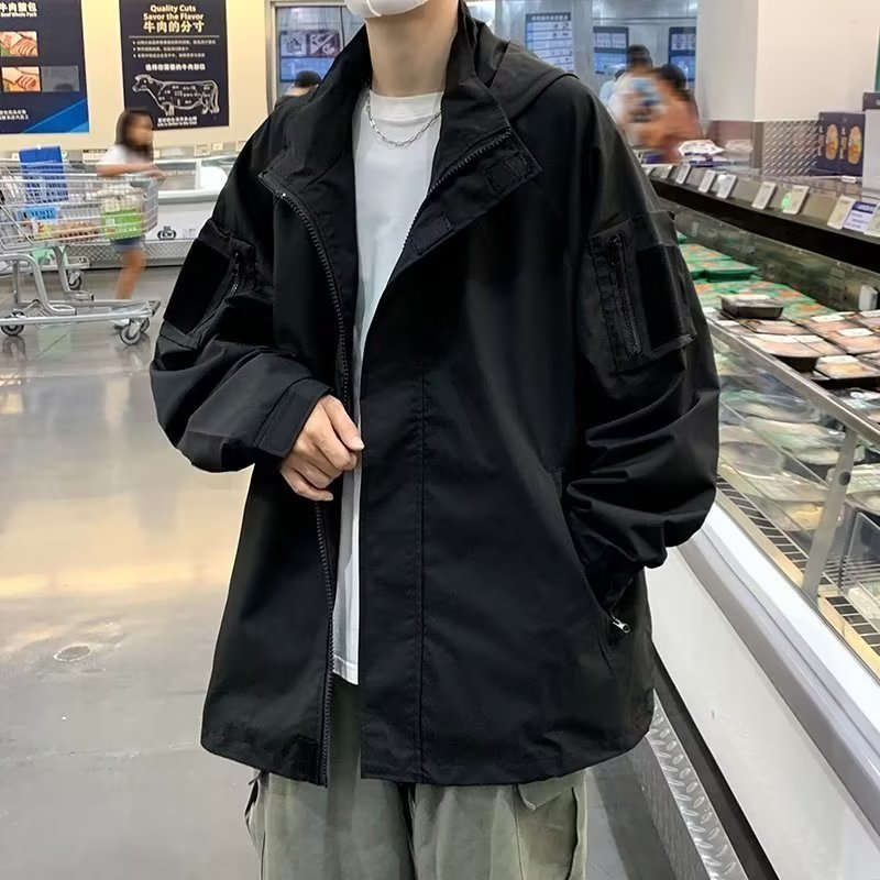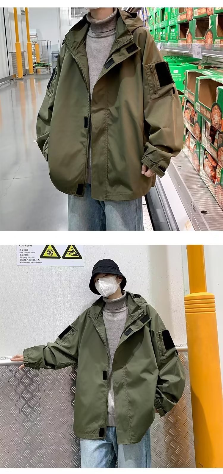 홍콩 스타일 후드 자켓 남자 가을 2023 미국 스타일 하이 스트리트 패셔너블 브랜드 하이 엔드 느낌 더피 핸섬 패셔너블 재킷스토어 가기