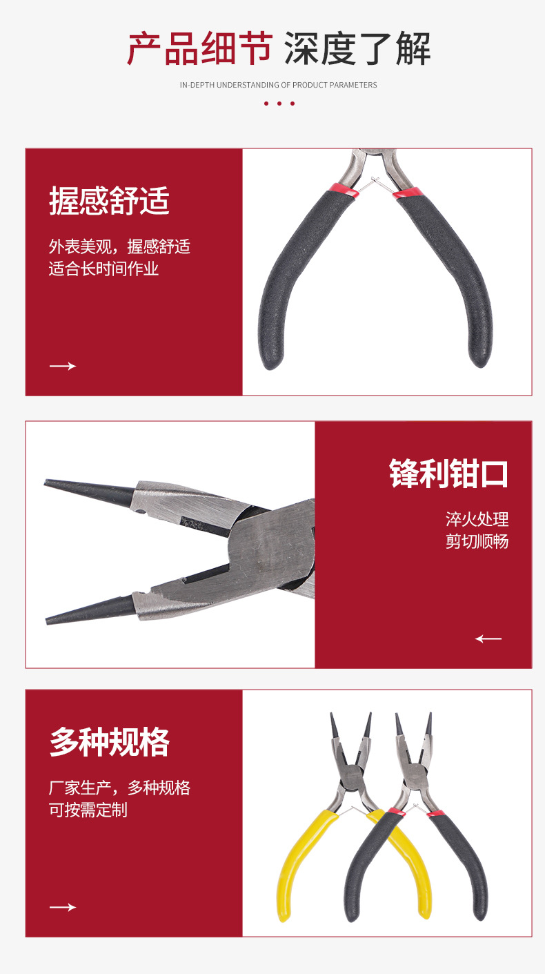 공장 보석 펜치 고급 미끄럼 4.5 인치 둥근 입 비스듬한 전단 뾰족한 코 펜치 DIY 수동 권선 장식스토어 가기