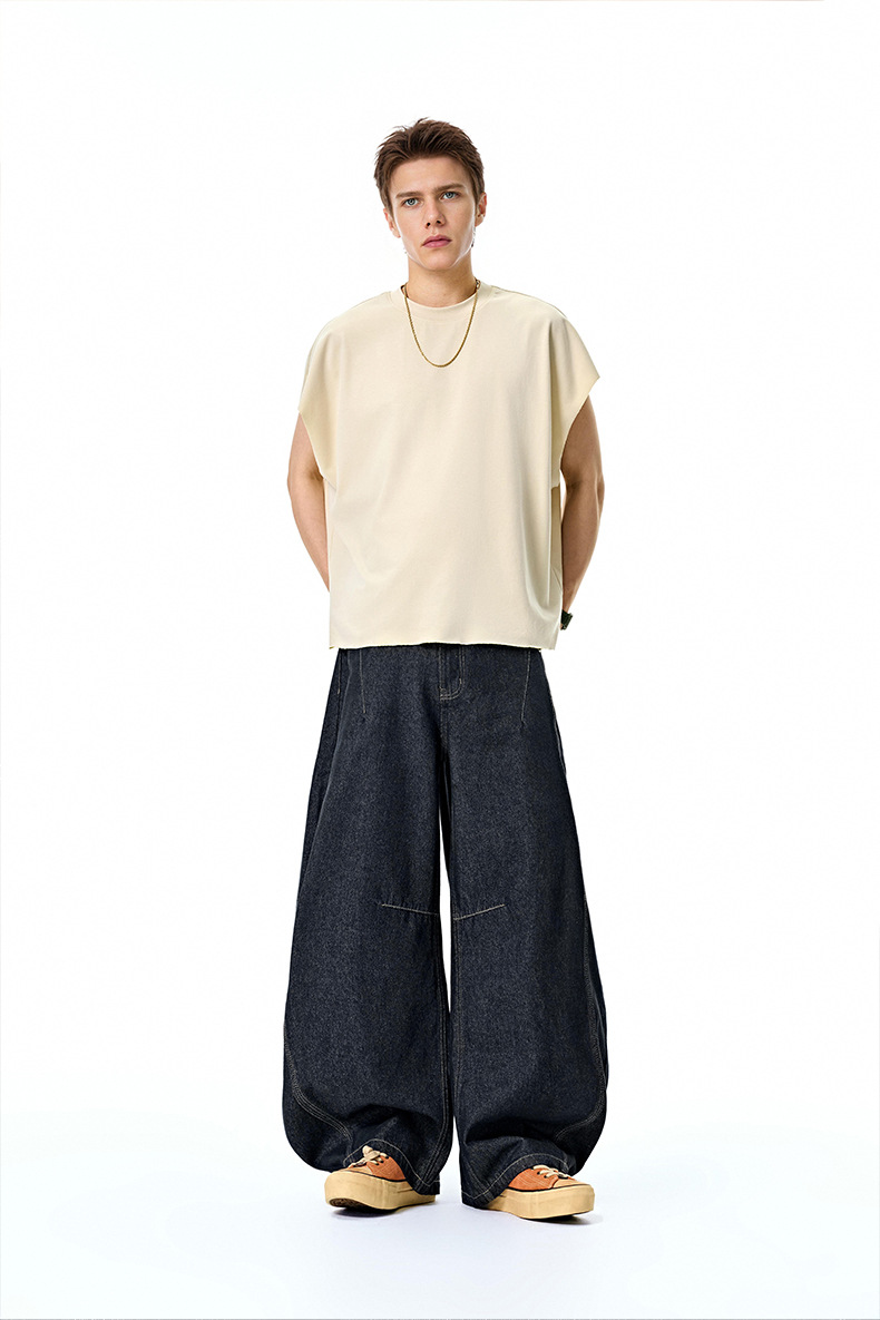 Jie Zhan 남성복 | 오리지널 암소 컬러 와이드 레그 Machete 청바지 25 봄과 여름 새로운 미국 스타일 네일 헐렁한 낫 바지 남성스토어 가기
