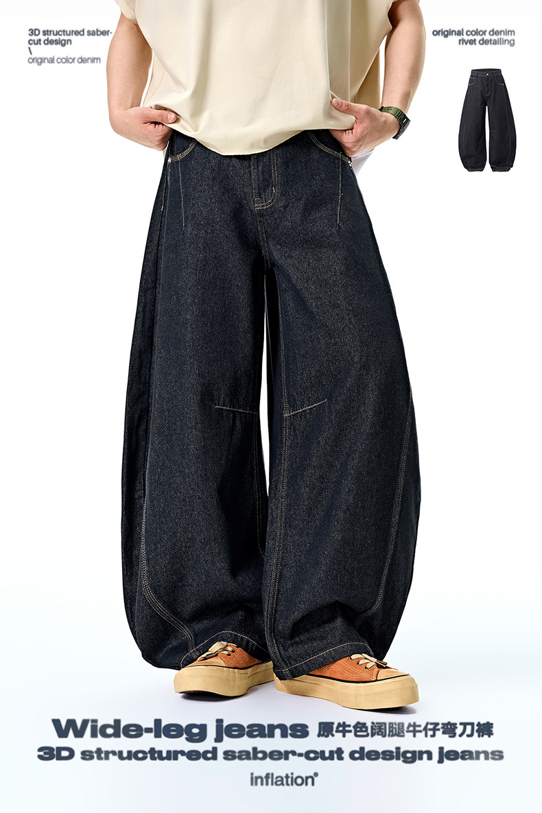 Jie Zhan 남성복 | 오리지널 암소 컬러 와이드 레그 Machete 청바지 25 봄과 여름 새로운 미국 스타일 네일 헐렁한 낫 바지 남성