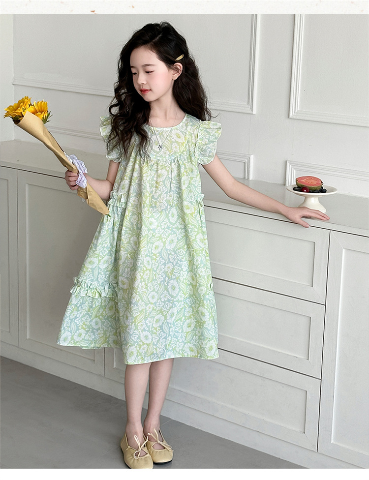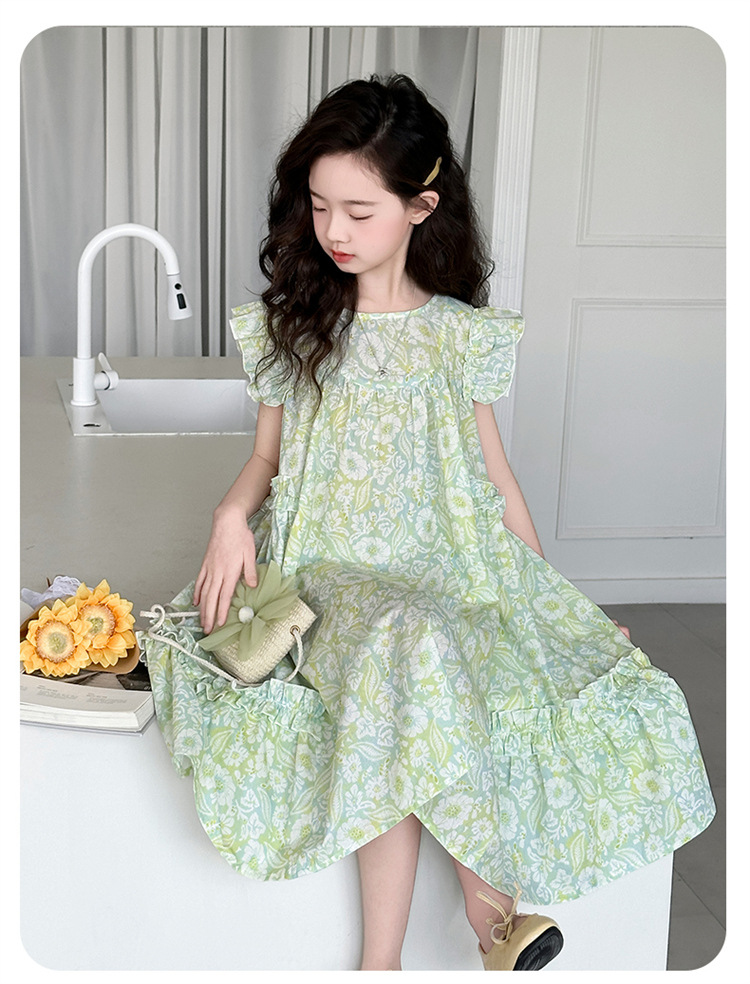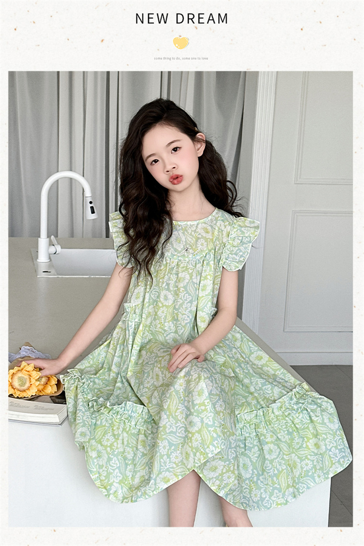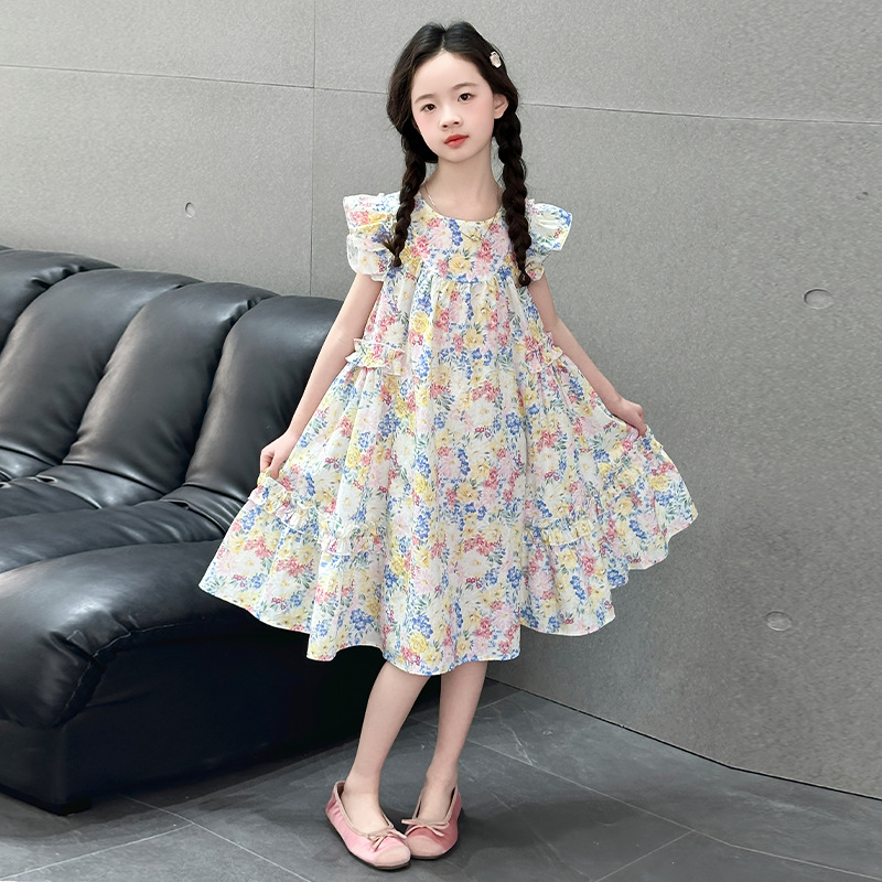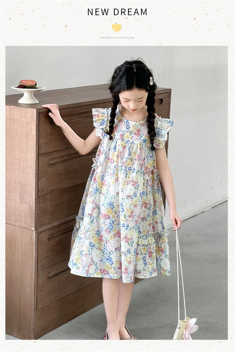 여자 드레스 여름 2025 새로운 어린이 여름 드레스 얇은 여자 꽃 공주 드레스 코튼 드레스 유행스토어 가기