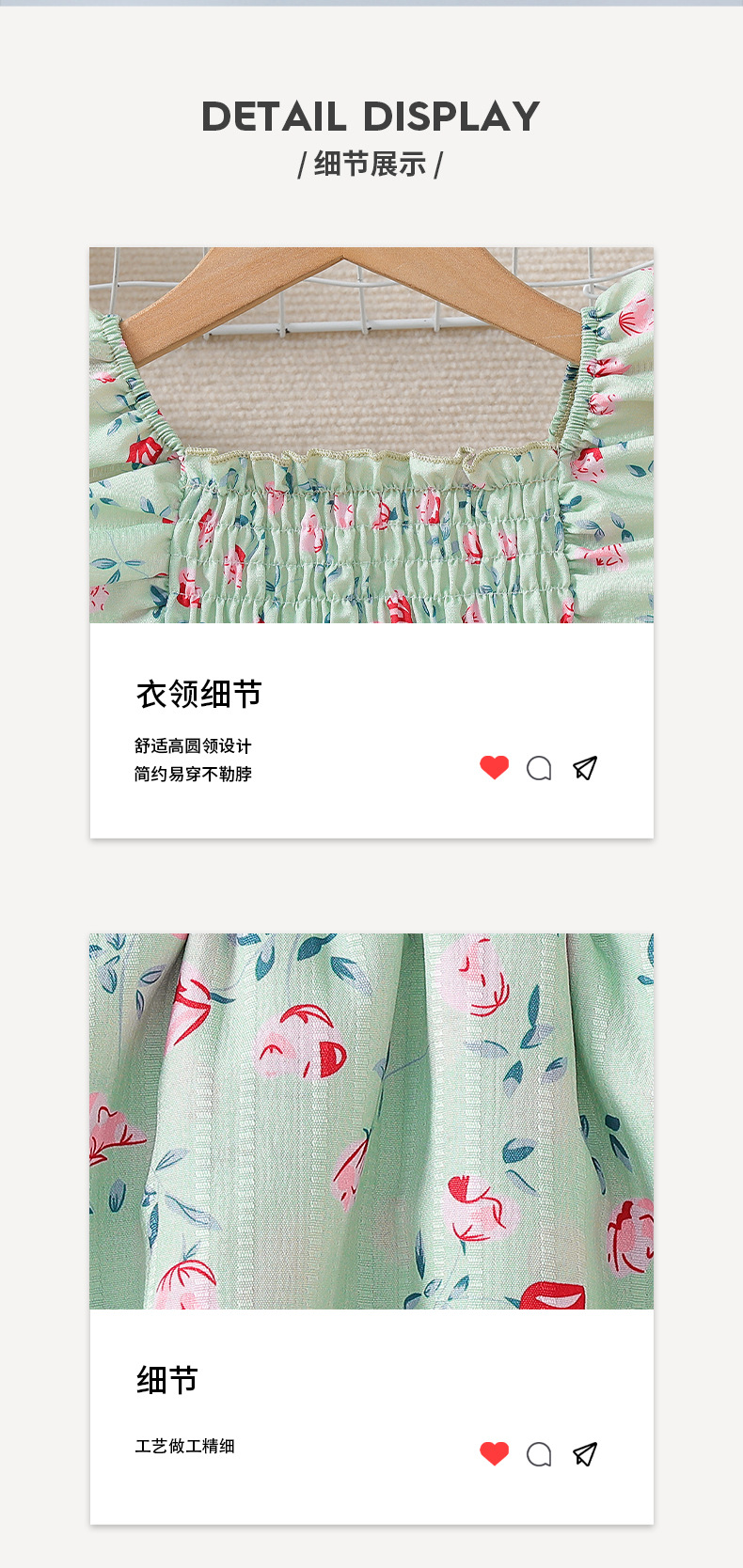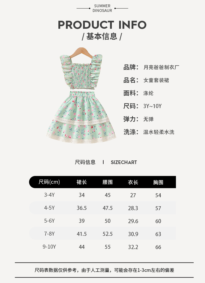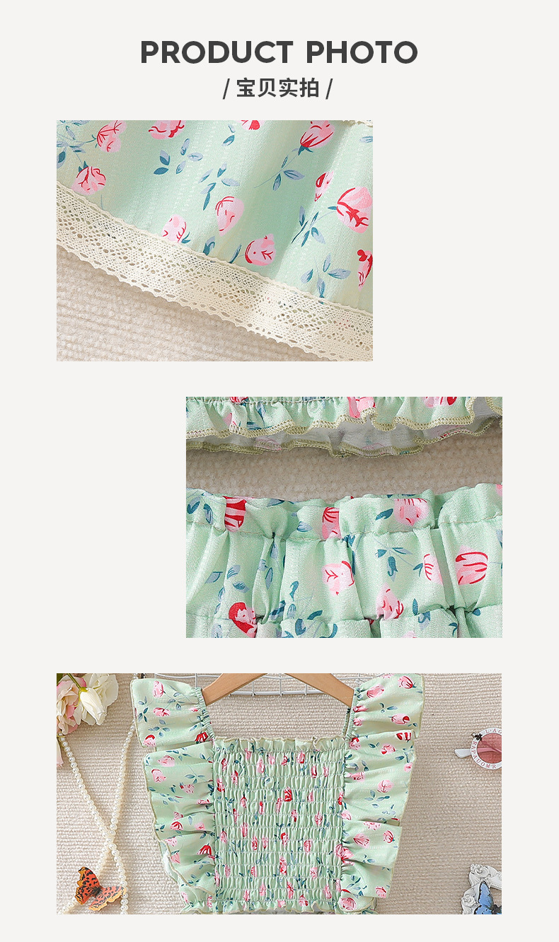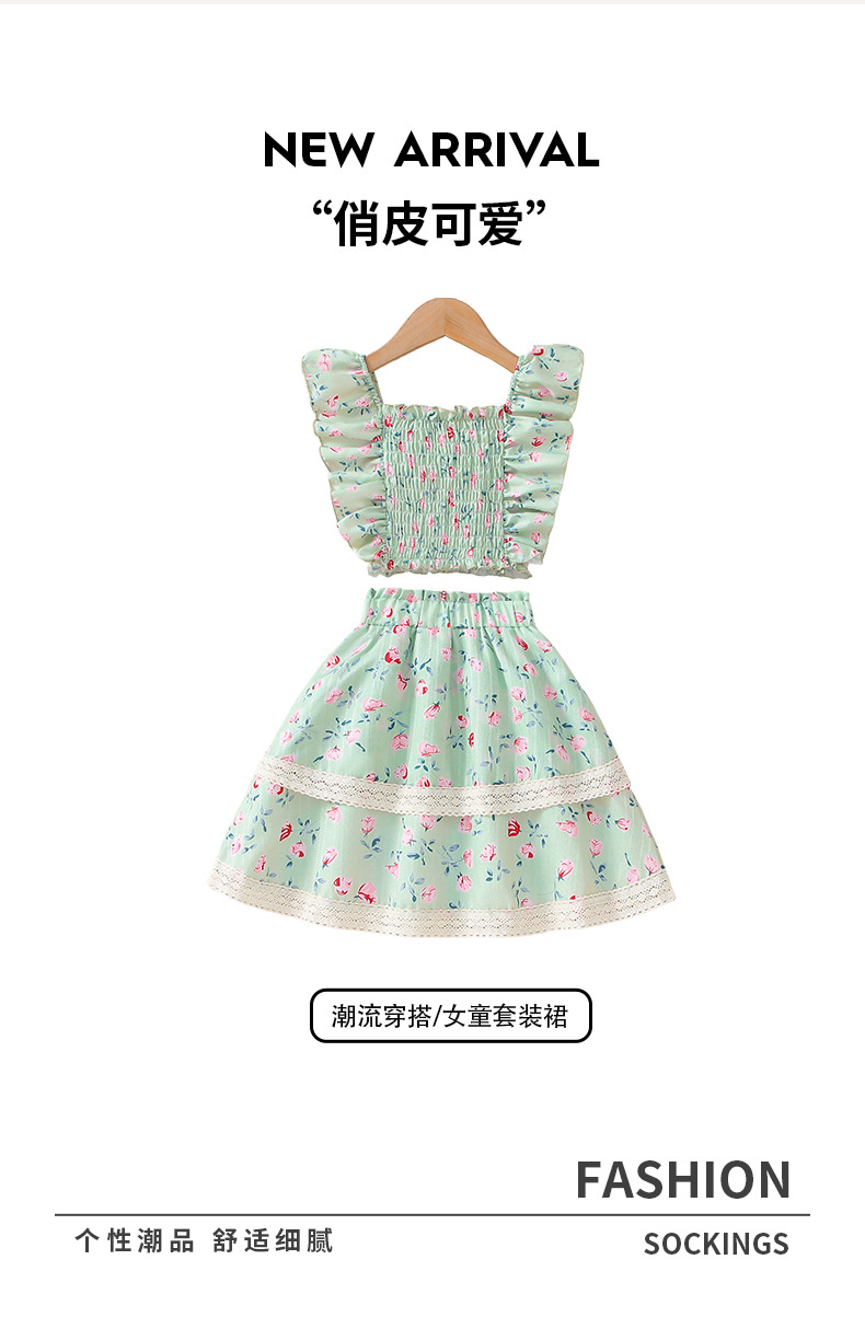 국경 간 여자 치마 세트 프렌치 플라잉 슬리브 작은 꽃 녹색 케이크 스커트 여름 어린이 치마 투피스 세트스토어 가기