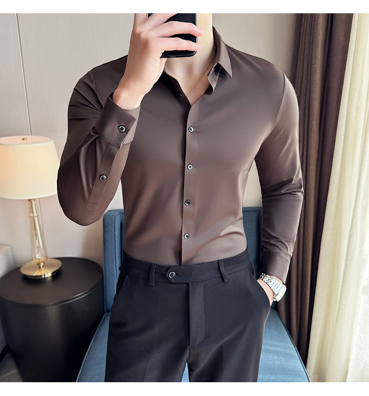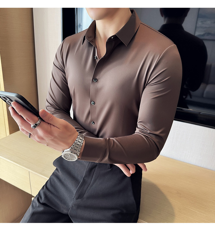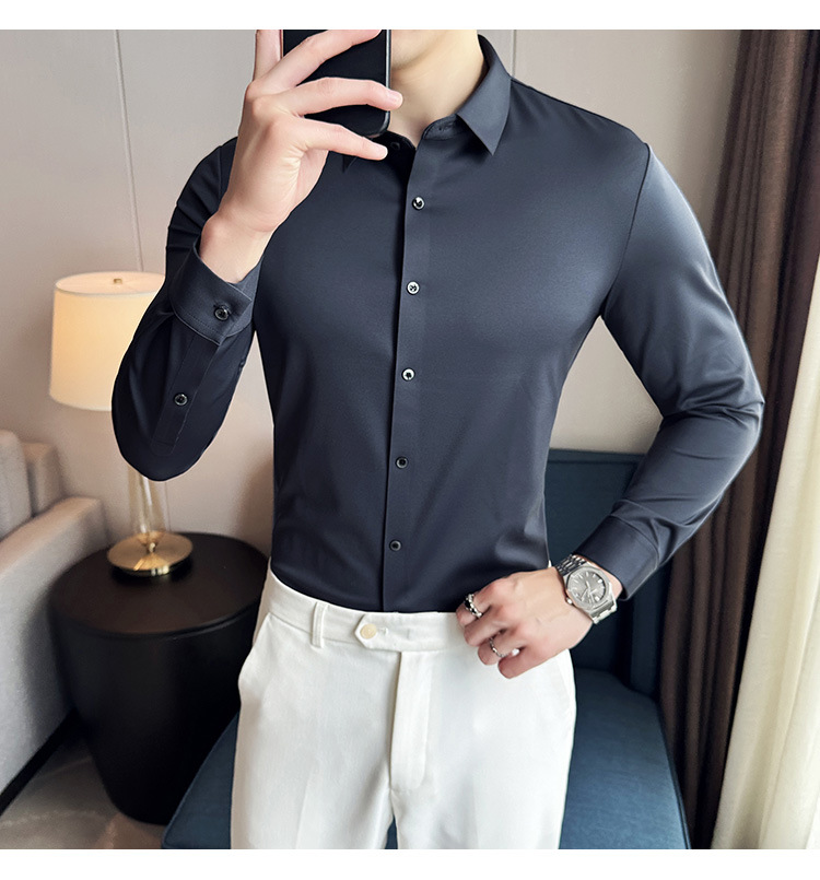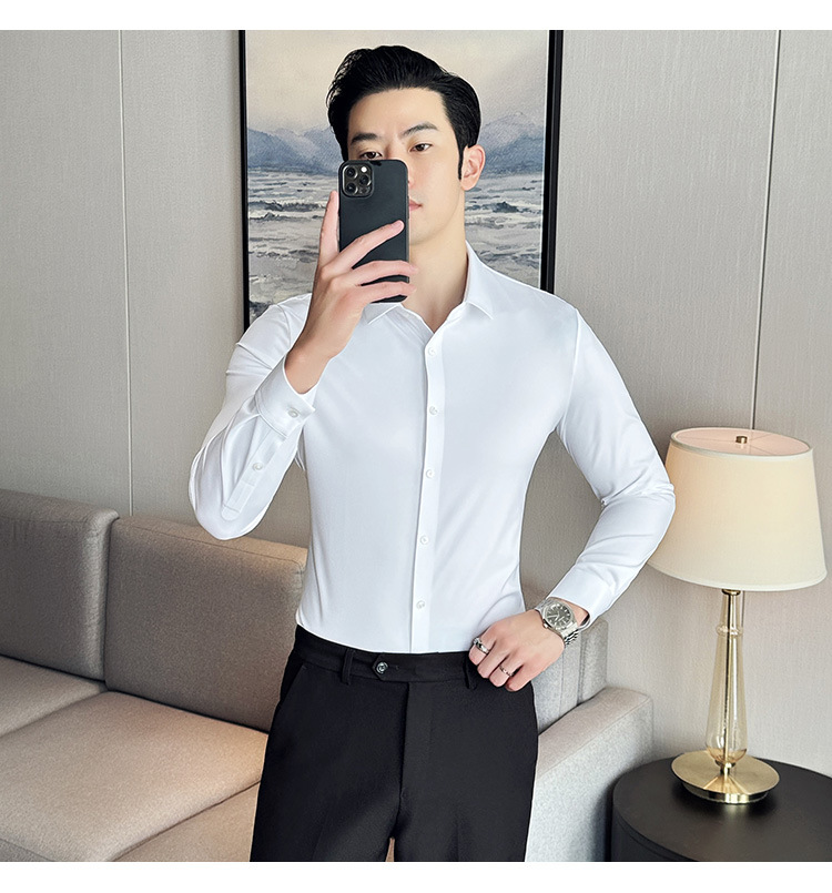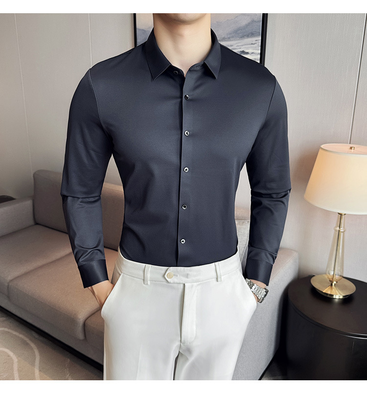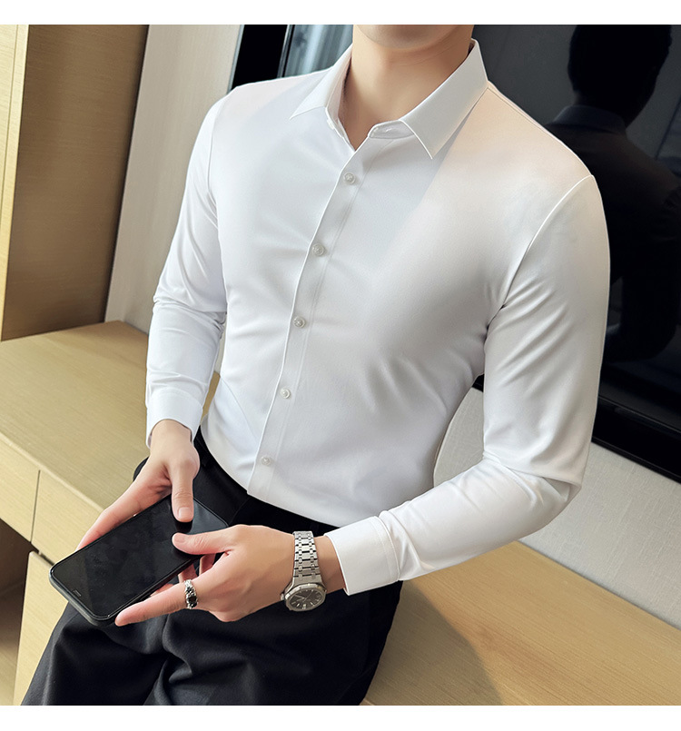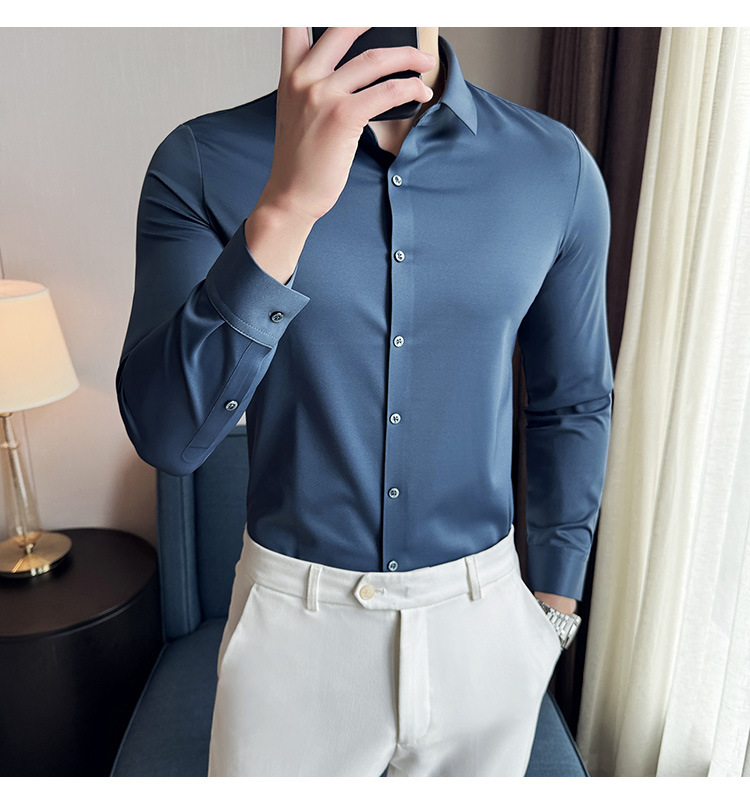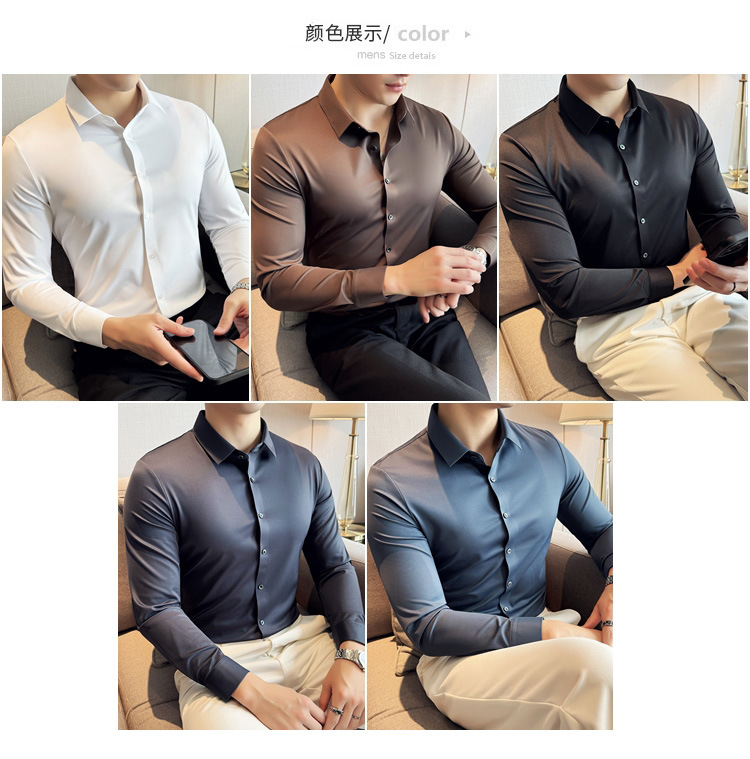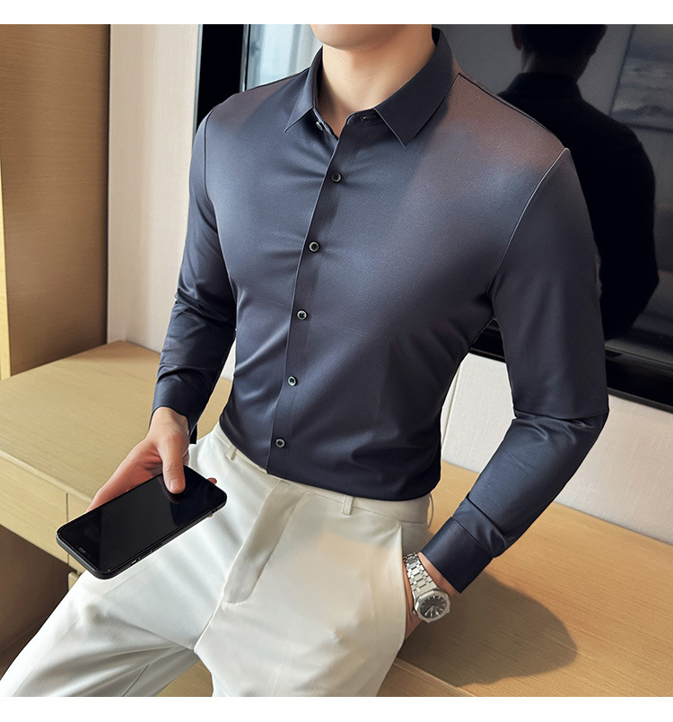 틱톡 인기 상품 공장 직송 5A 항균 삼중 방수 무자국 셔츠 남성용 긴팔 비즈니스 캐주얼 고탄력 셔츠