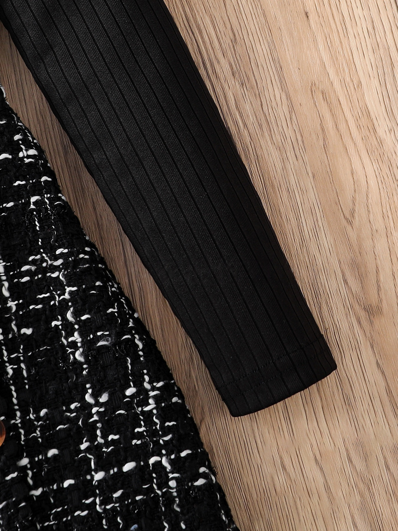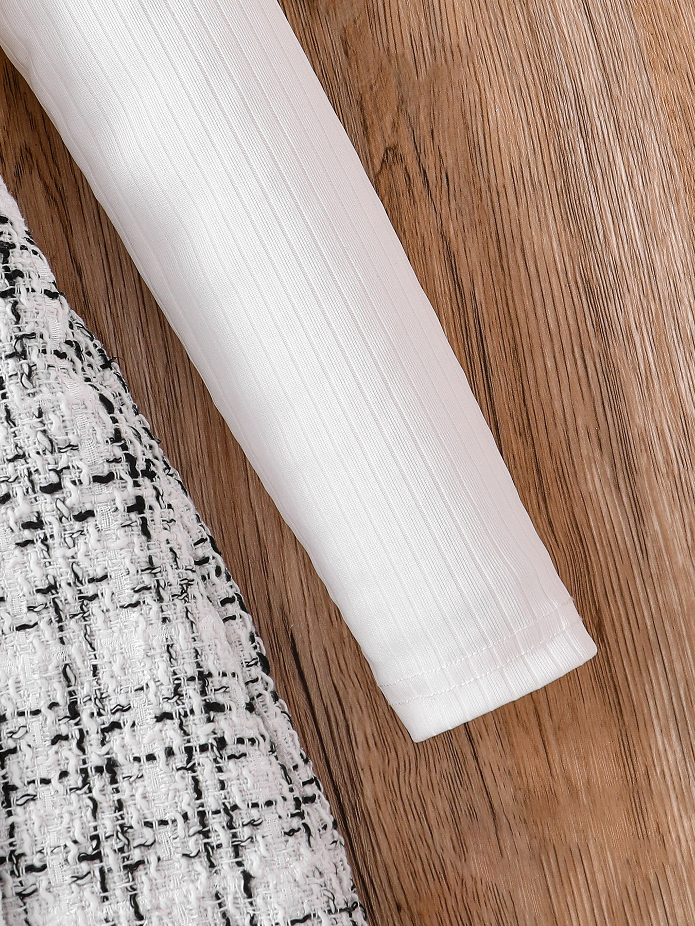 Xiyin 국경 뜨거운 판매 봄과 가을 Xiaoxiang 스타일 소녀 스커트 작은 비행 소매 긴 소매 니트 탑 불규칙한 스커트스토어 가기