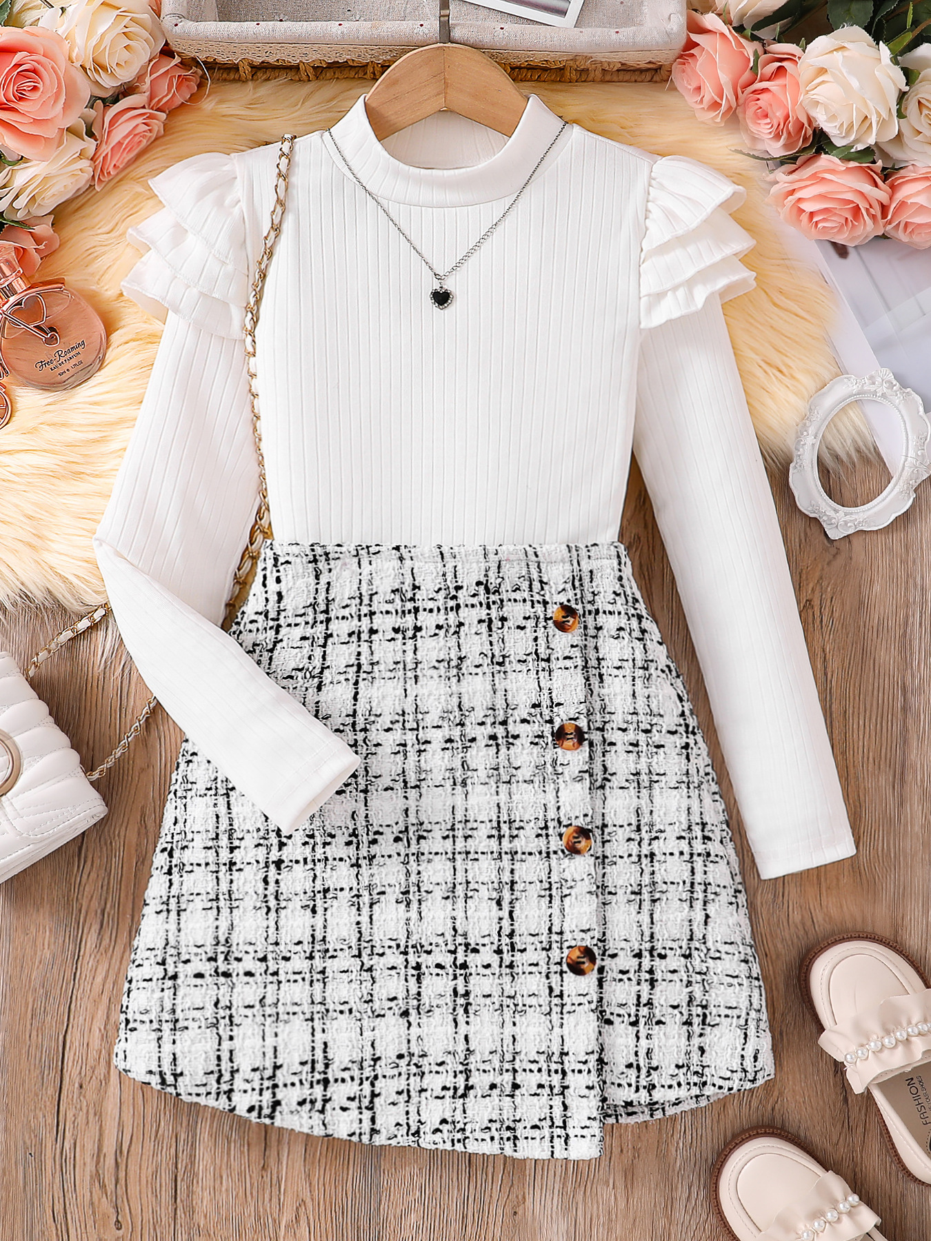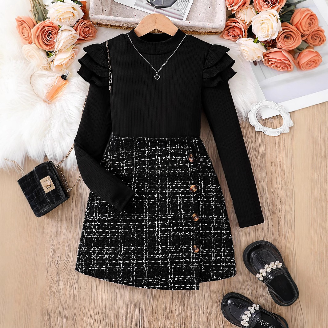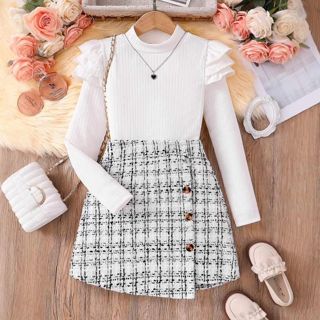 Xiyin 국경 뜨거운 판매 봄과 가을 Xiaoxiang 스타일 소녀 스커트 작은 비행 소매 긴 소매 니트 탑 불규칙한 스커트