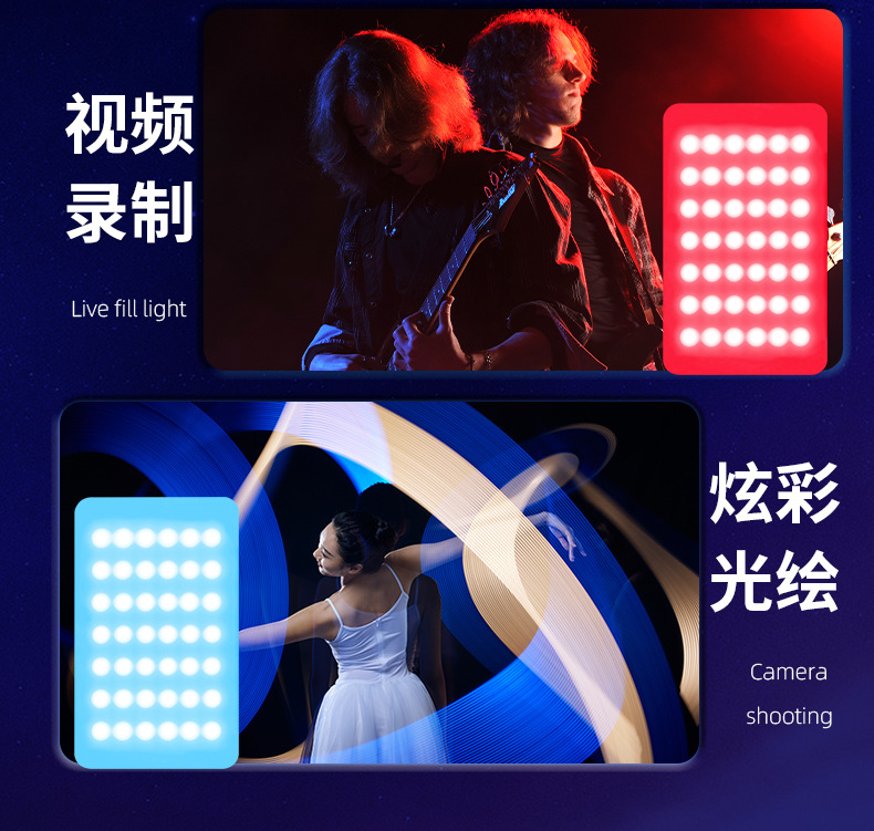 RGB 채우기 라이트 포켓 램프 휴대용 휴대 전화 브래킷 카메라 라이브 SLR 셀카 vlog 사진의 국경 간 엄격한 선택