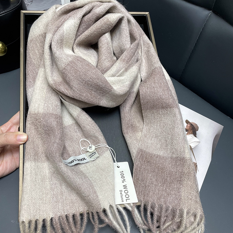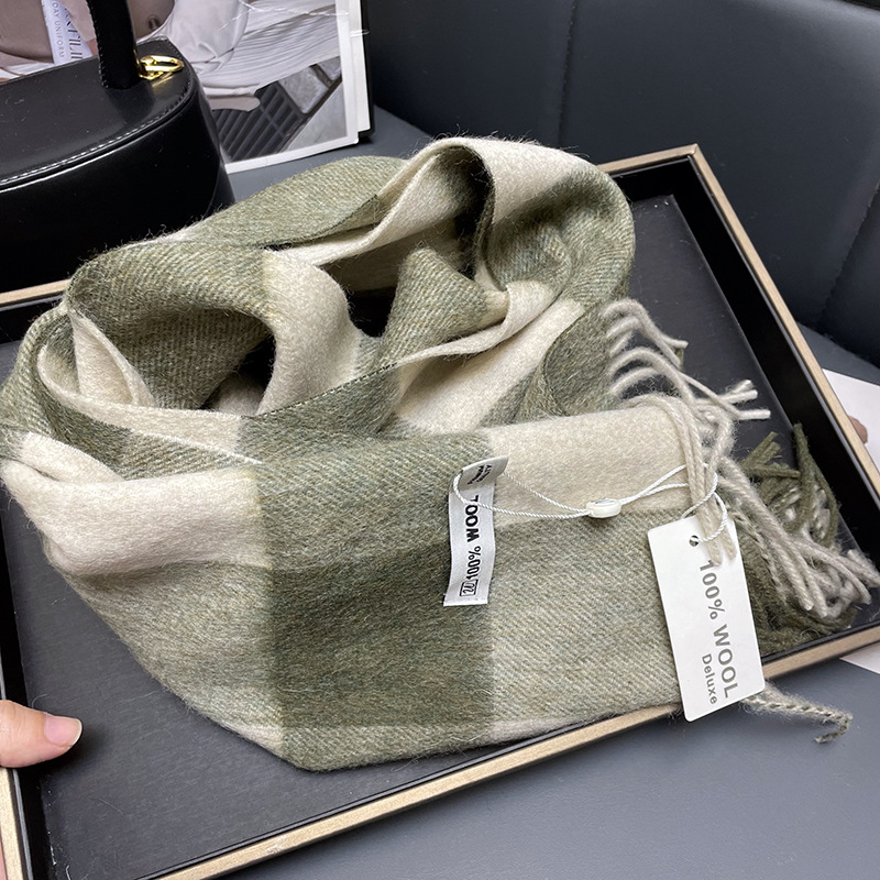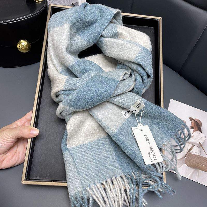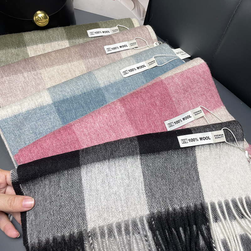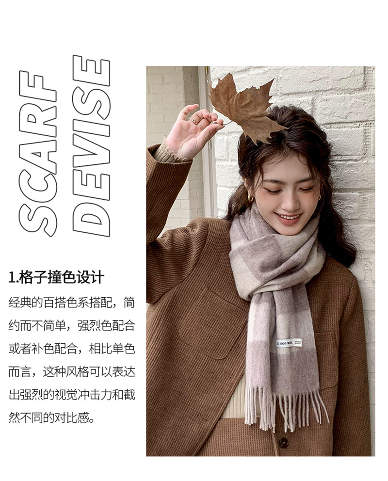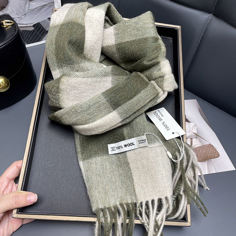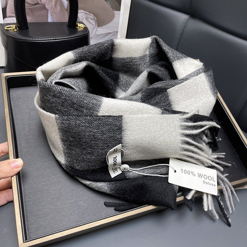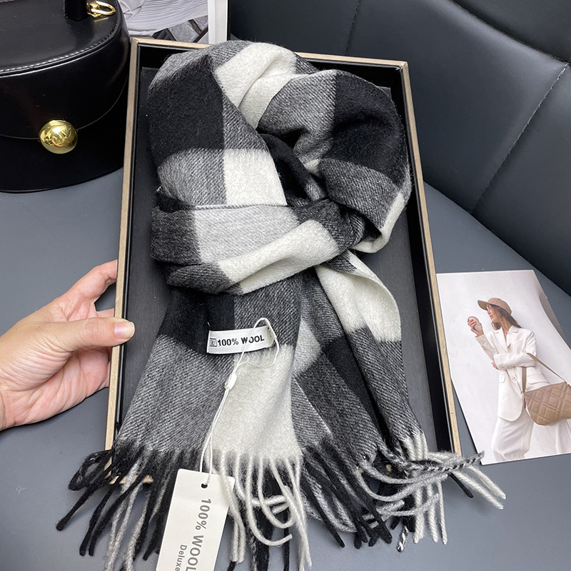양모 스카프 여자 겨울 올매치 유행 웨스턴 스타일 하이 엔드 따뜻한 목 좁은 버전 긴 색상 일치 격자 무늬 목도리 여성을위한스토어 가기