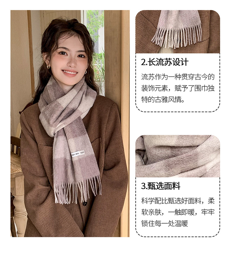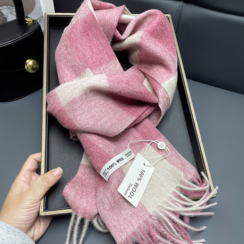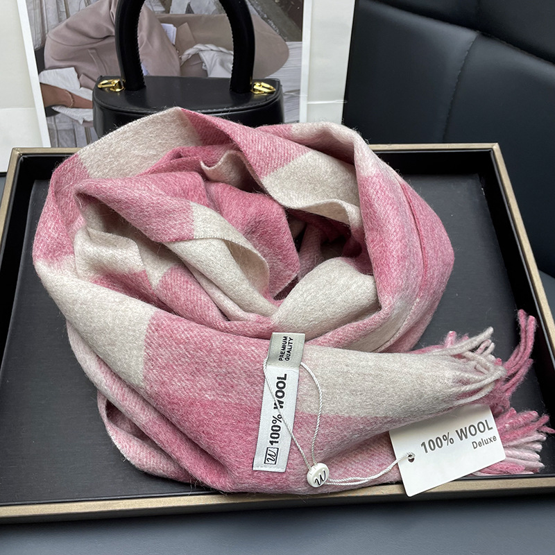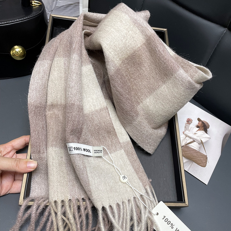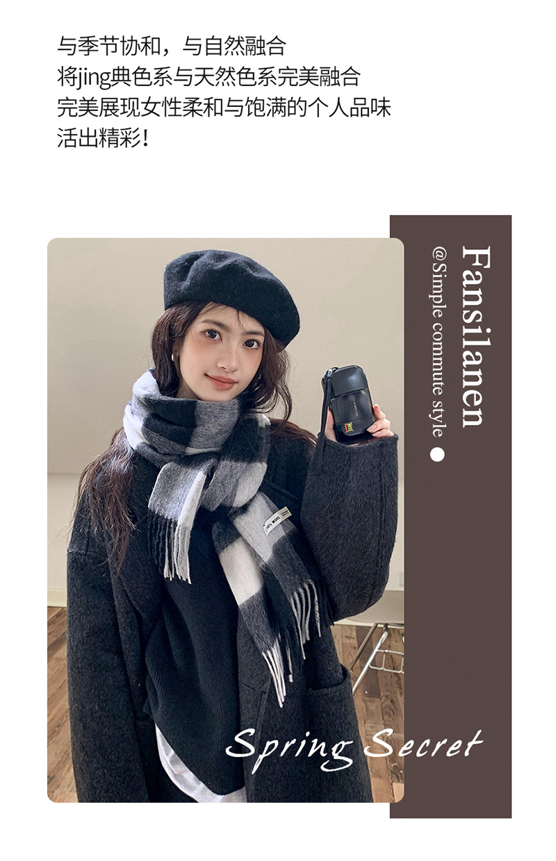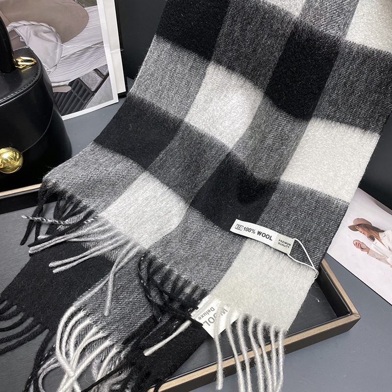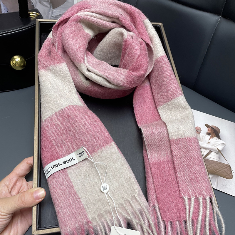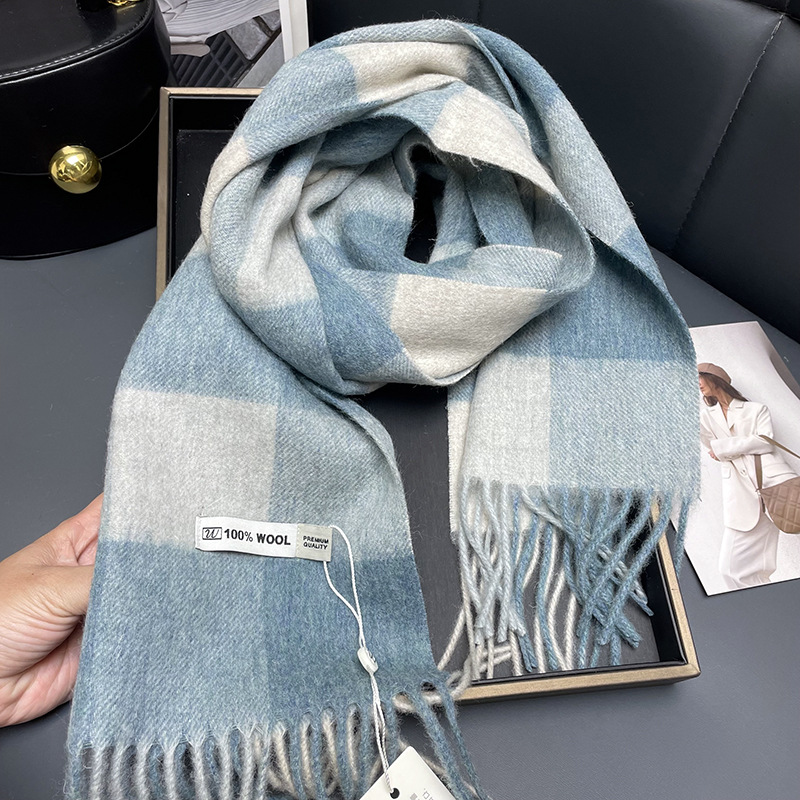 양모 스카프 여자 겨울 올매치 유행 웨스턴 스타일 하이 엔드 따뜻한 목 좁은 버전 긴 색상 일치 격자 무늬 목도리 여성을위한스토어 가기