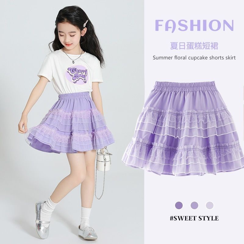 소녀 스커트 서양식 어린이 푹신한 스커트 여름 소녀 짧은 스커트 큰 어린이 봄과 가을 공주 메쉬 스커트 여름 원피스