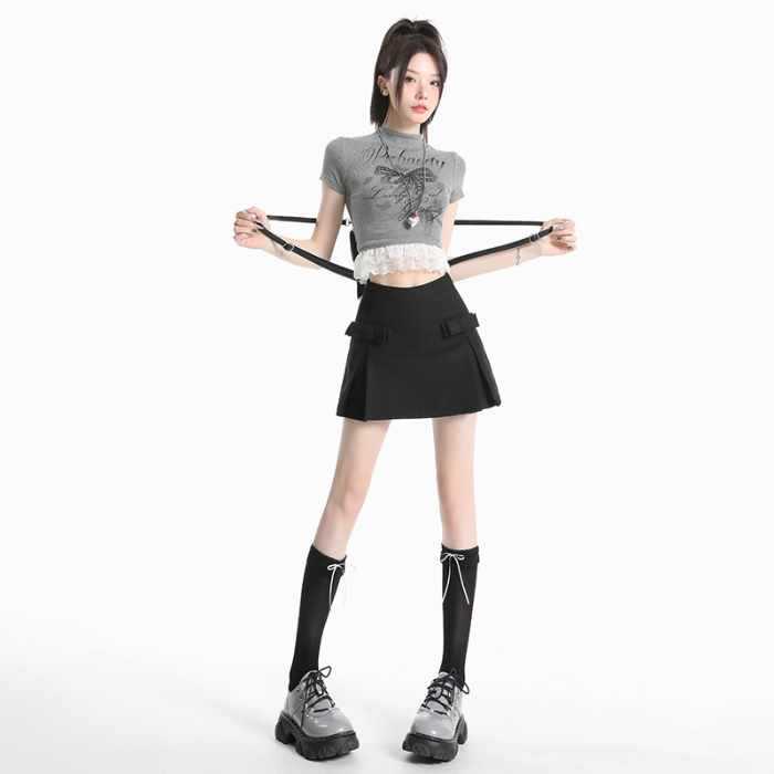 BBN 그레이 보우 스커트 여성 여름 신작 하이 웨이스트 슬림 A 라인 스커트 쁘띠 슈트 스커트스토어 가기