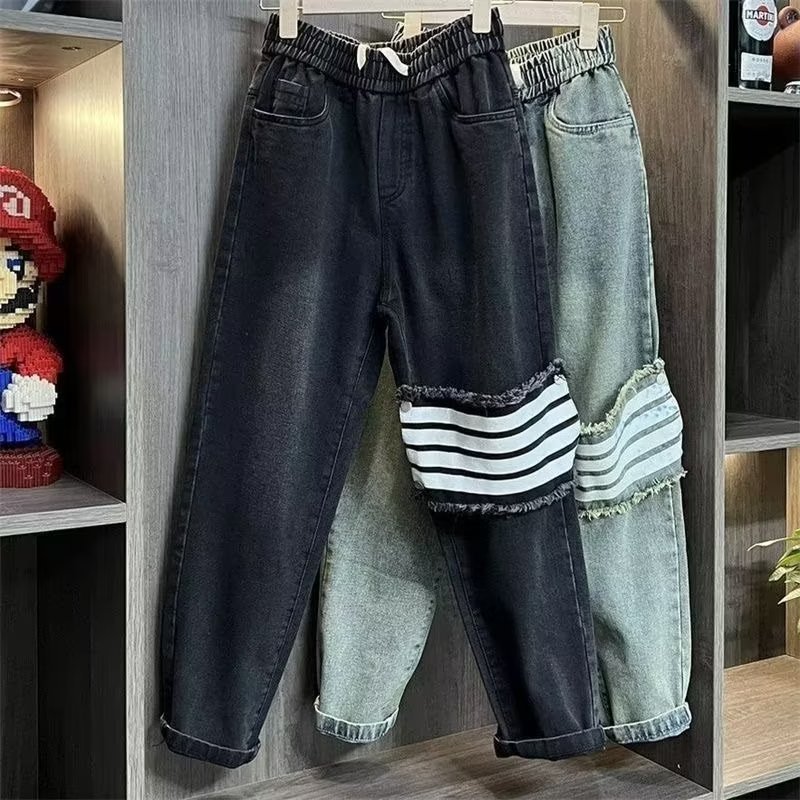 바이브 디자인 센스 4 웨이 바 청바지 남성용 대형 일본식 레트로 스트레이트 루즈 슬리밍 팬츠
