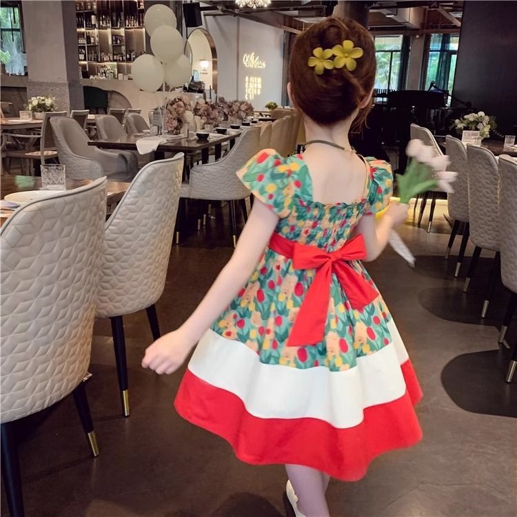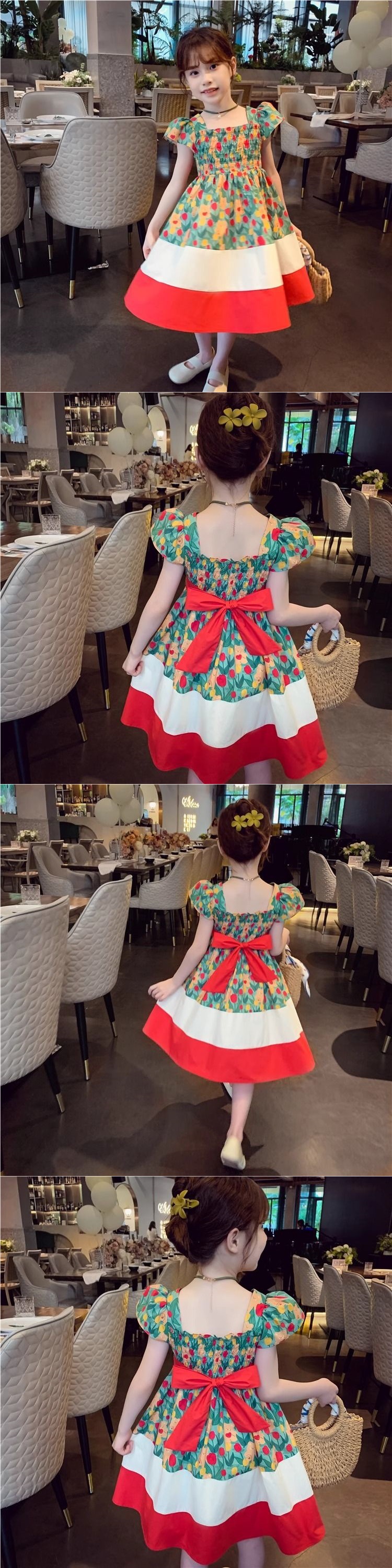 소녀의 원피스 여름 2024 여름 새로운 스타일 어린이 튤립 활 공주 소녀의 비행 소매 원피스스토어 가기
