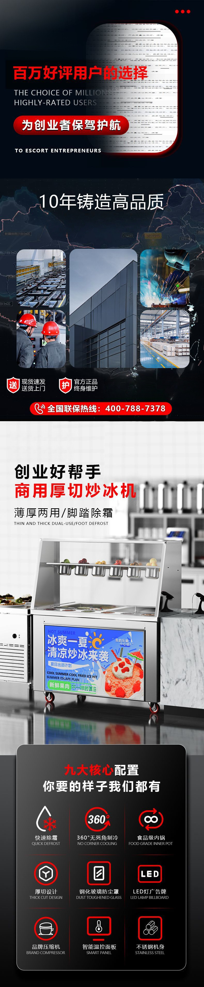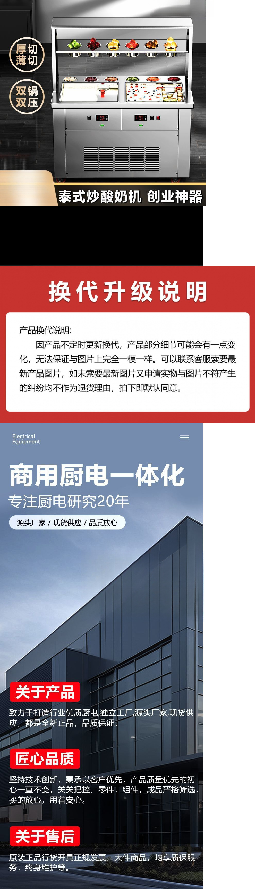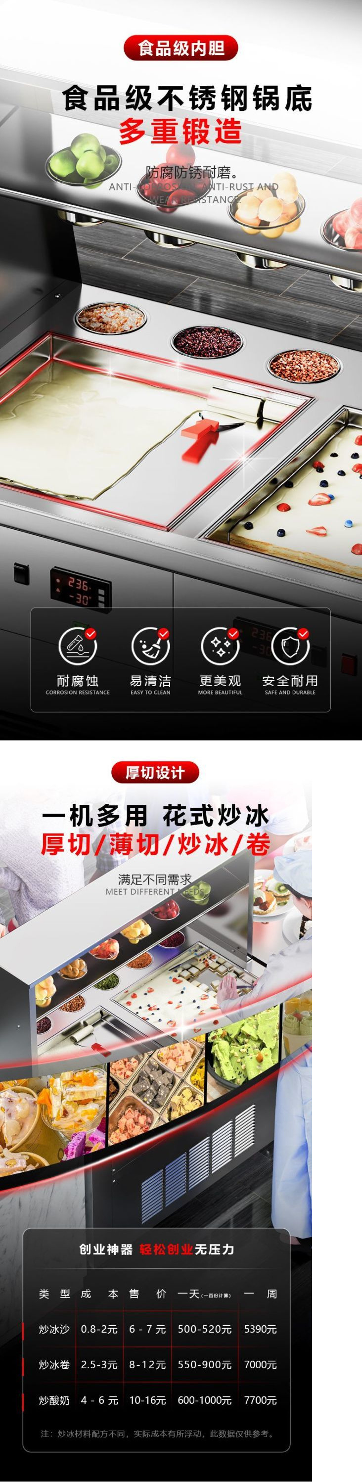 두껍게 자른 요거트 기계, 아이스크림 및 아이스 크림 기계, 우유 및 아이스크림 롤 기계, 싱글 및 더블 상업용 다기능스토어 가기