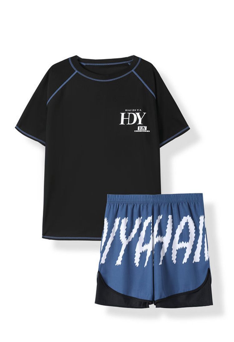 수영복 남성 수영복 세트 청소년 성인 소년 플러스 사이즈 수영 바지 탑 수영 장비 온천스토어 가기