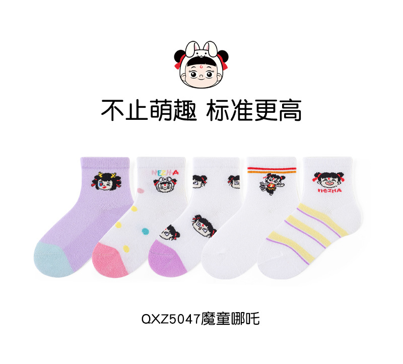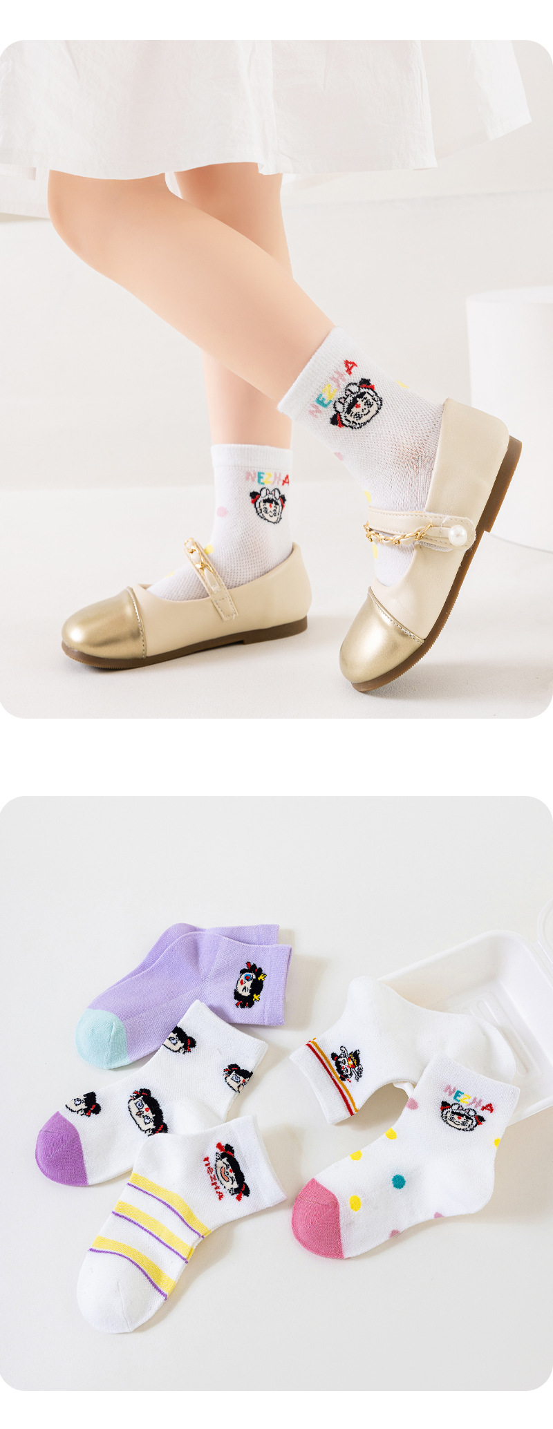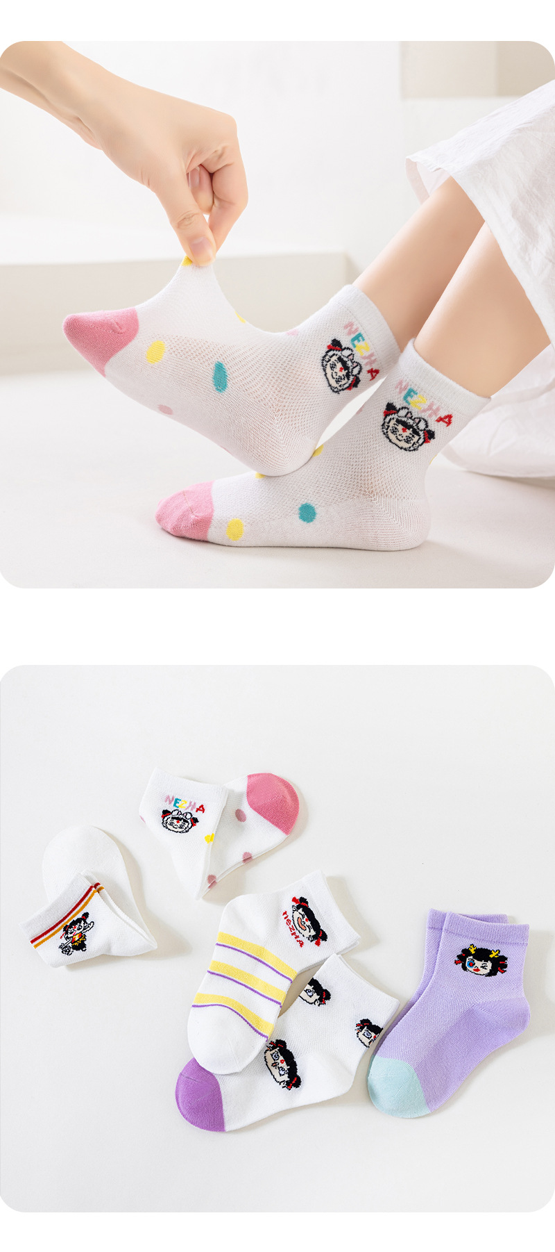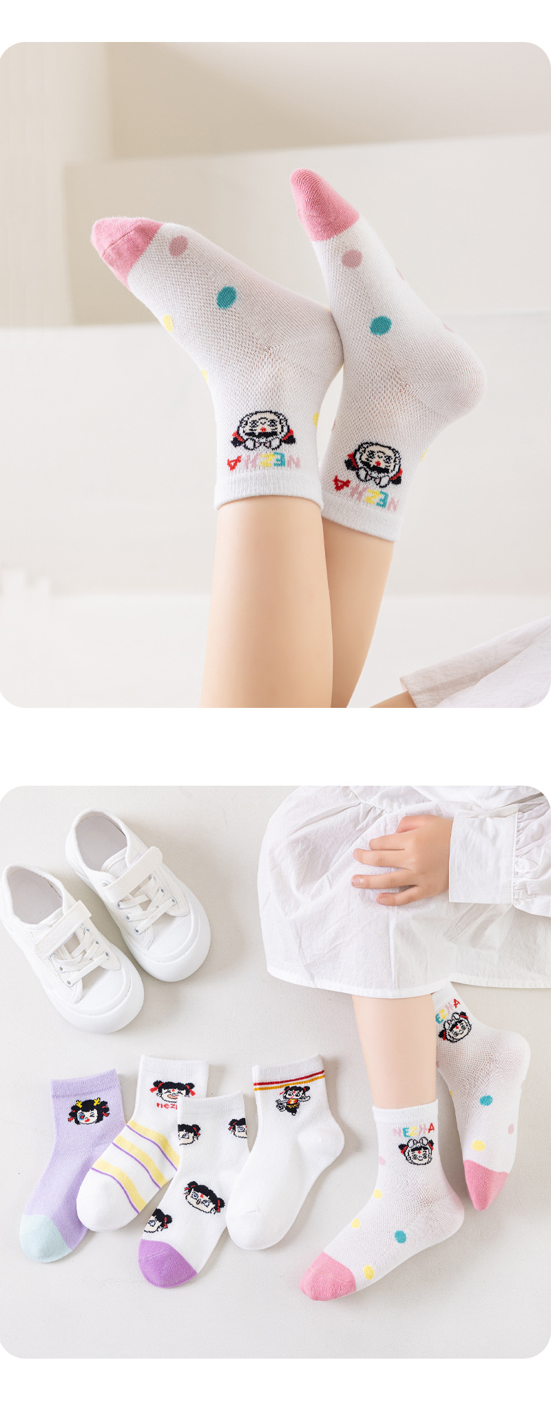 만화 Nezha Naohai 어린이 양말 2025 여름 새로운 메쉬 양말 소년과 소녀 학생 중간 튜브 양말 dropshipping스토어 가기