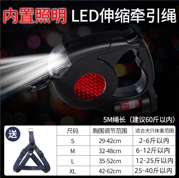 狗狗牵引绳中小型犬带灯自动伸缩遛狗绳狗链泰迪柯基外出宠物用品