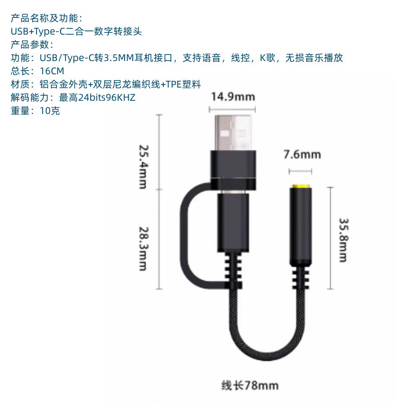 USB+Type-C 투인원 어댑터 케이블 외부 사운드 카드 헤드폰 어댑터 케이블 오디오 케이블 연결 케이블 고품질스토어 가기