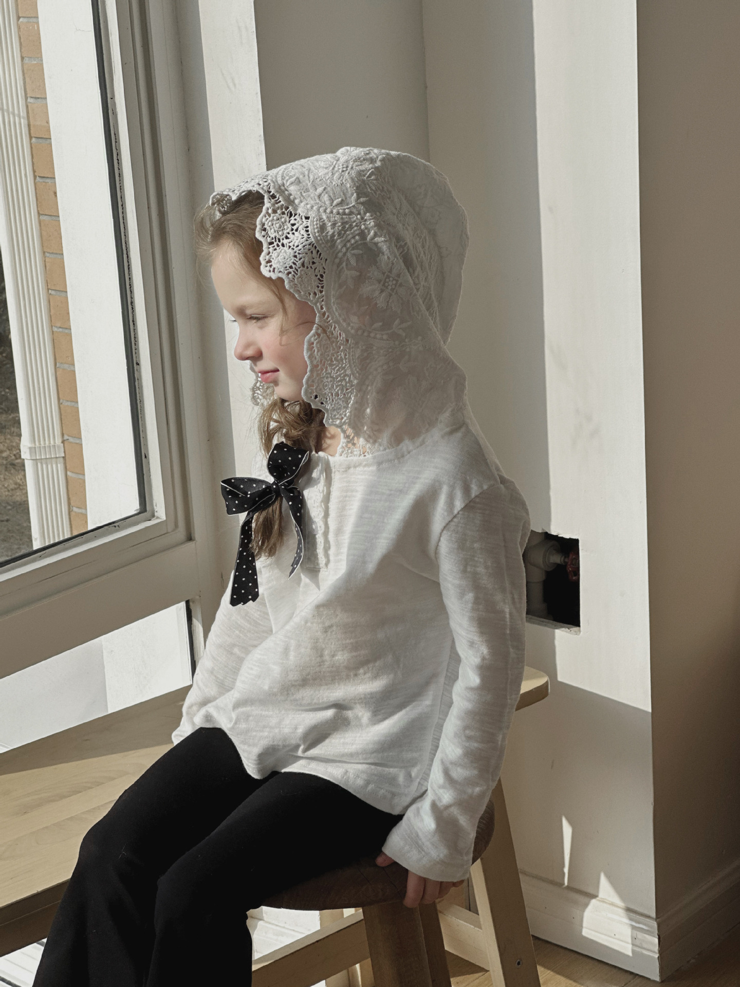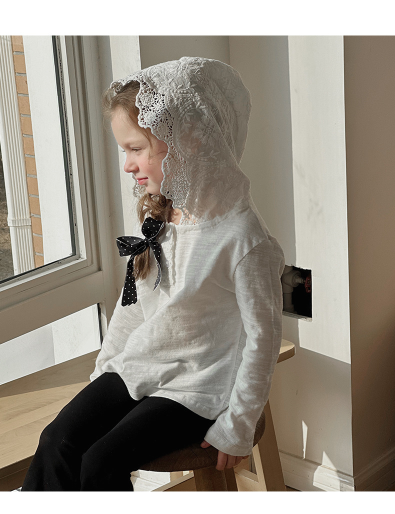 밀밭 시즌 2024 봄 새 여자 긴팔 티셔츠 한국면 레이스 후드 탑 아동베이스 셔츠