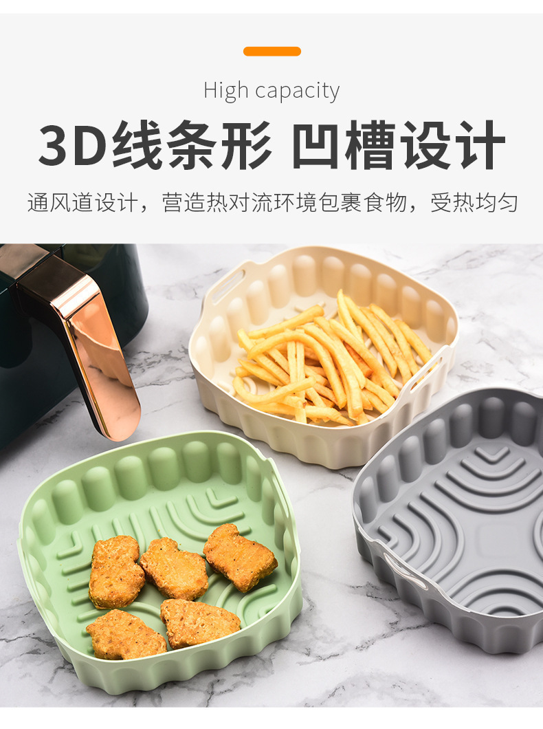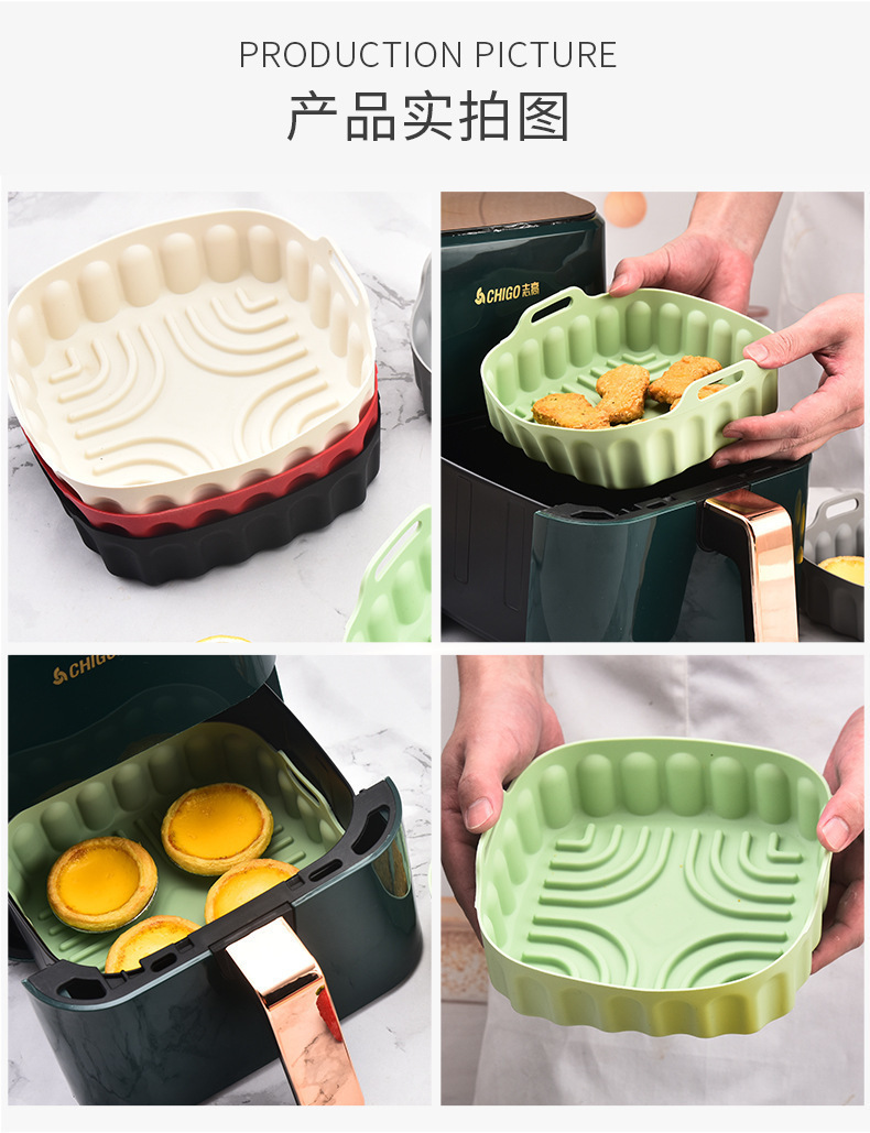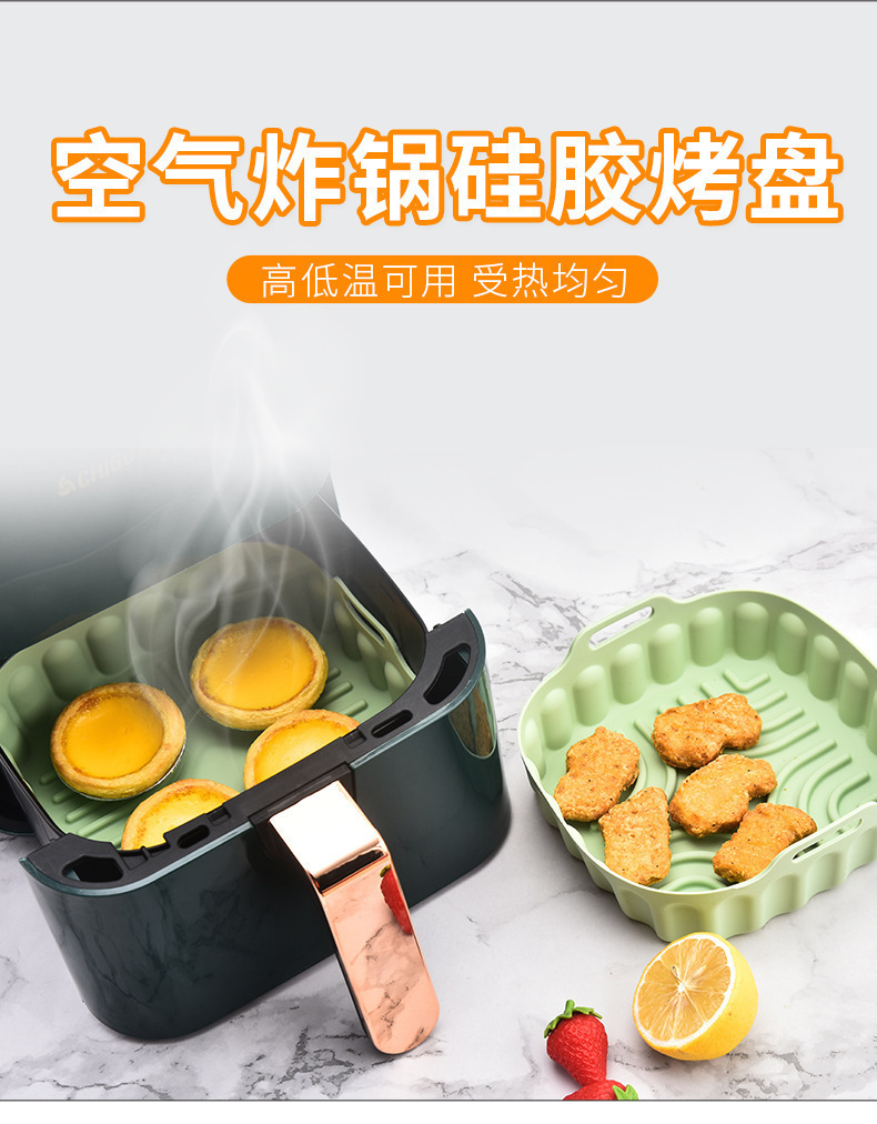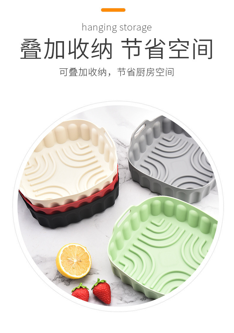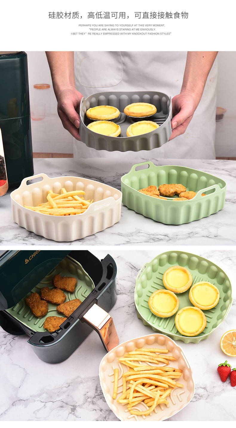 에어 프라이어 실리콘 베이킹 팬 재사용 가능한 실리콘 냄비 매트 크리 에이 티브 케이크 금형 고온 방지 오일 증기 트레이