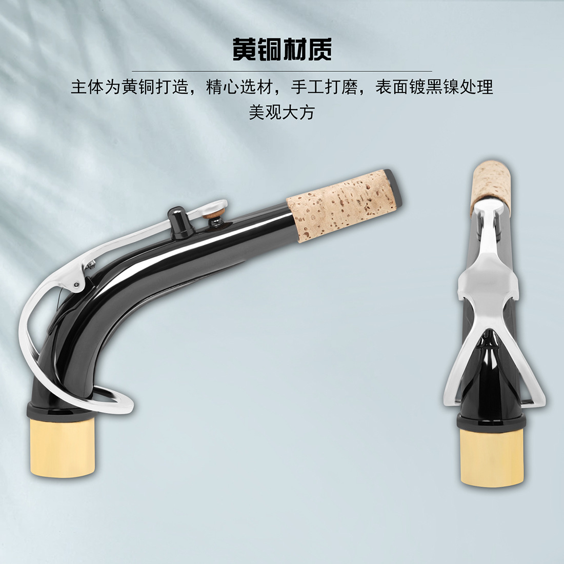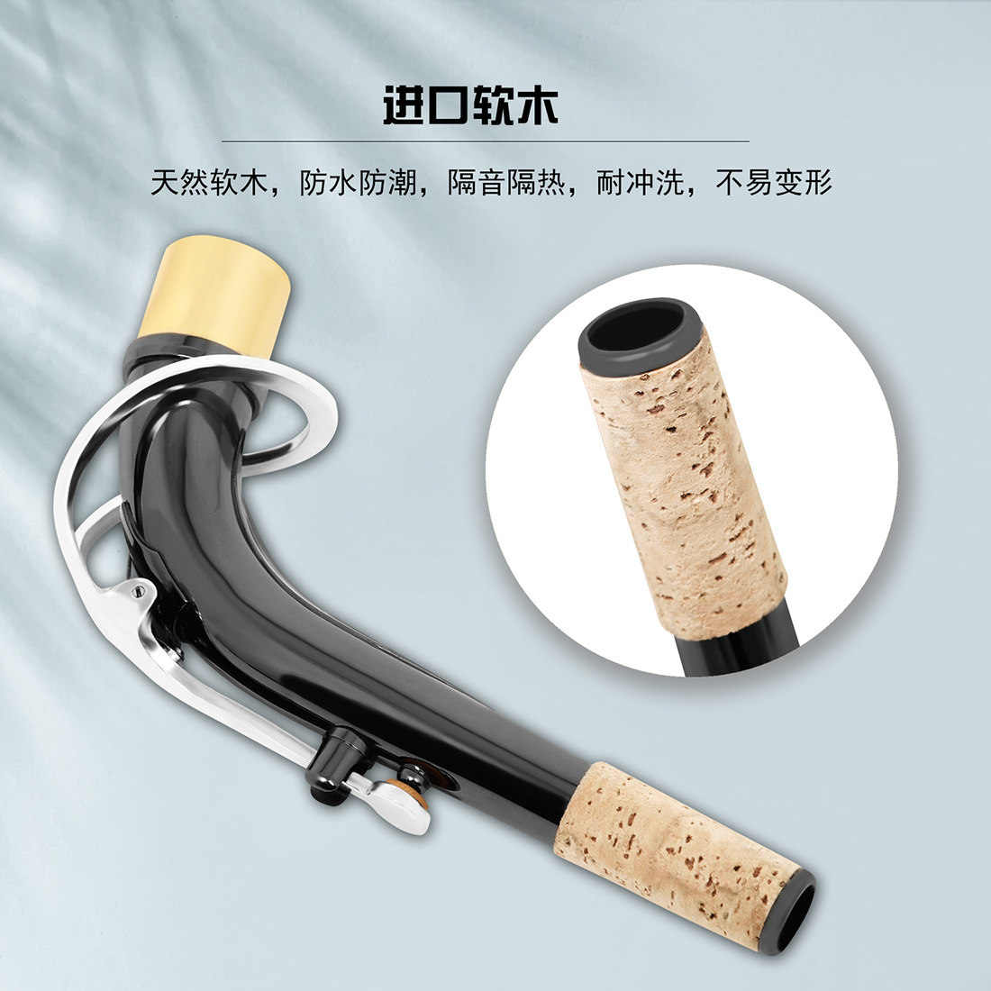 用途卖点:适用于中音萨克斯,乐器专用配件,黄铜镀黑镍弯脖,手工打磨,精心选材,进口皮垫气密性强,韧性适中,萨克斯专用软木片,防水防潮,隔音隔热,耐冲击不易变形,气息顺畅不透气,吹奏不费力