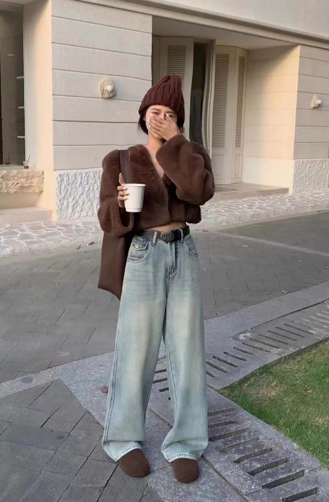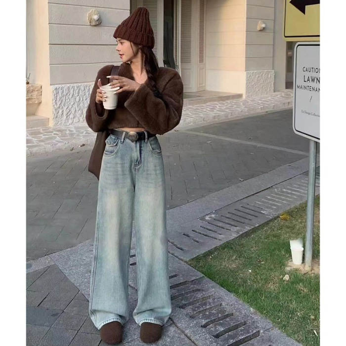 밝은 색 넓은 다리 청바지 여성의 높은 허리 2024 봄 새로운 느슨한 슬리밍 간단한 패션 스트레이트 바지스토어 가기