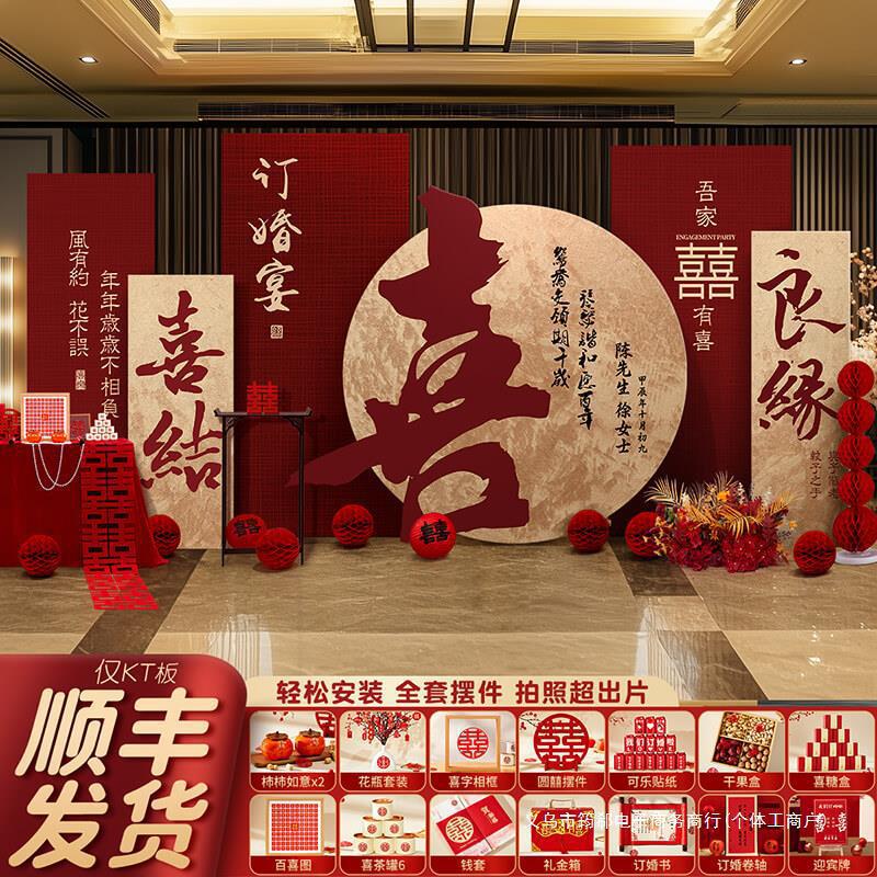 새로운 중국 스타일의 약혼 연회 레이아웃 장식품 테이블 장식 장면 행복한 워드 보드 배경 벽 용품 주문 전체 세트스토어 가기
