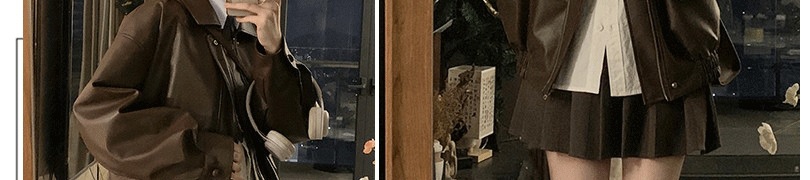 작은 세련된 가죽 짧은 코트 여자 2025 봄과 가을 새로운 미국 스타일 레트로 야구 세트 재킷 탑스토어 가기