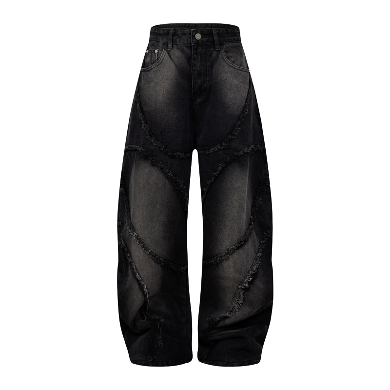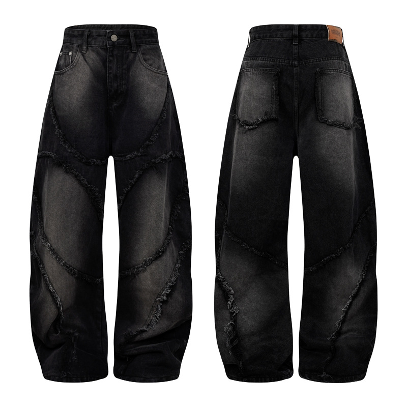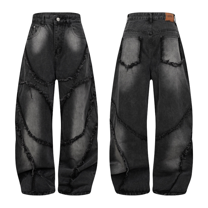 미국 스타일 복고풍 폐기물 지구 스타일 청바지 남성 거리 중공업, 남성용 스트레이트 루즈 와이드 다리 바지 세척스토어 가기