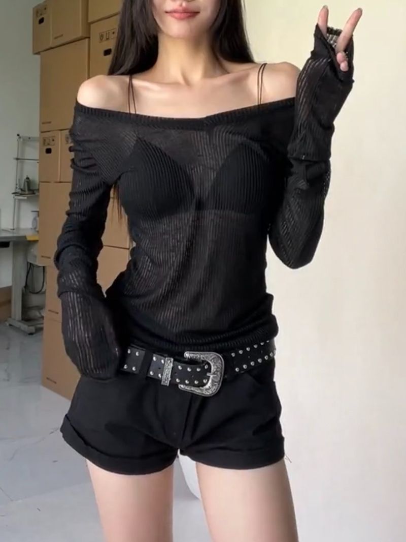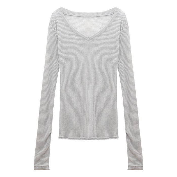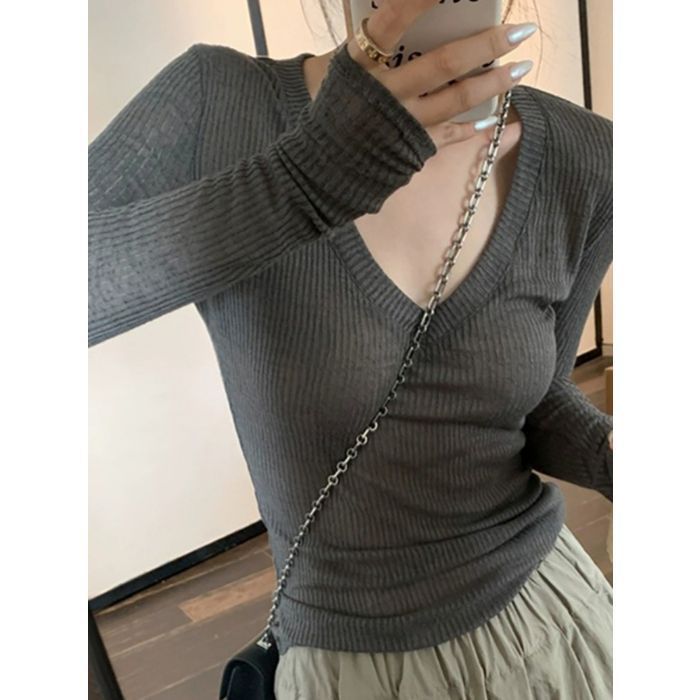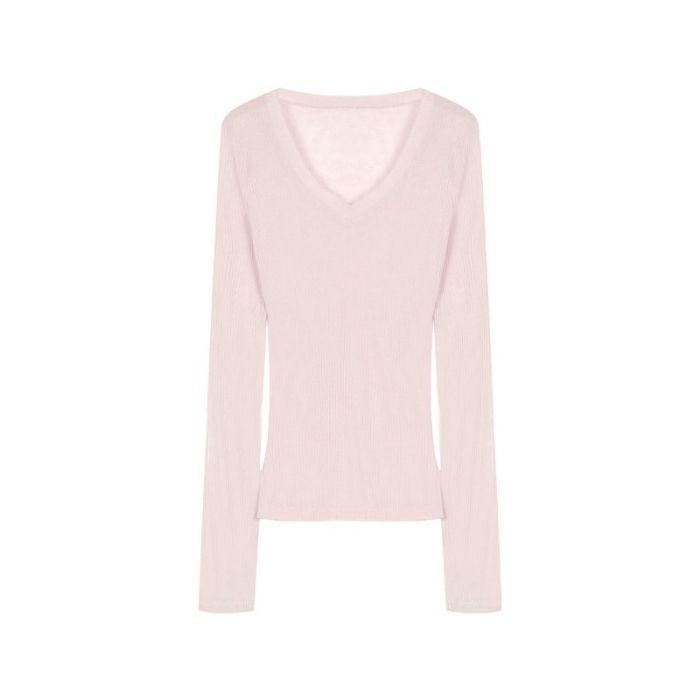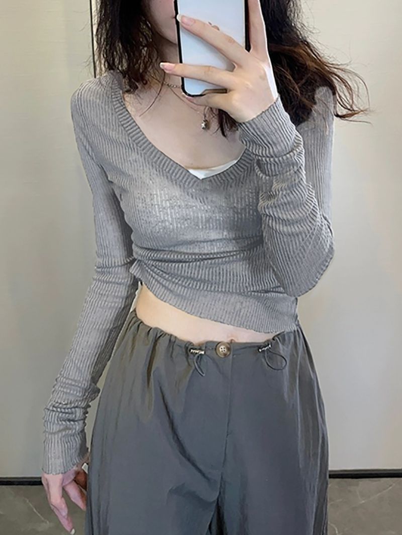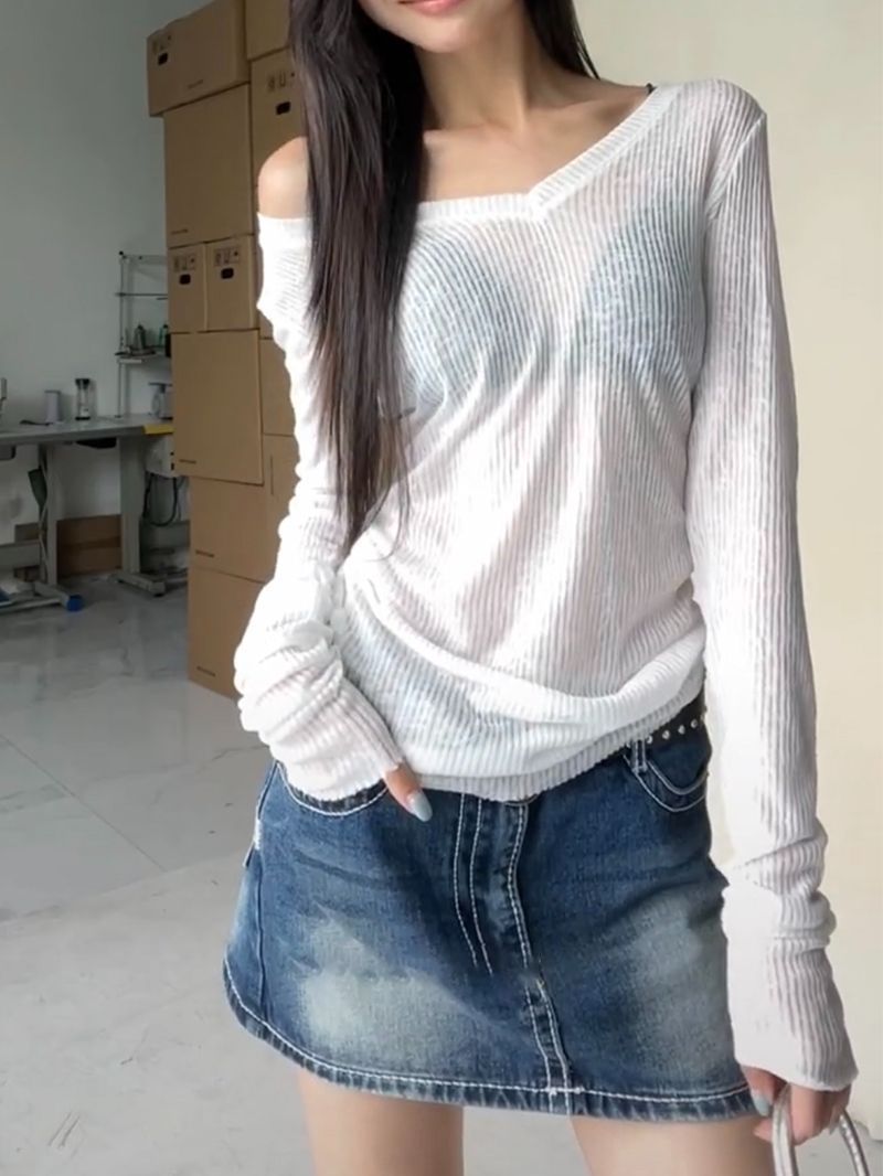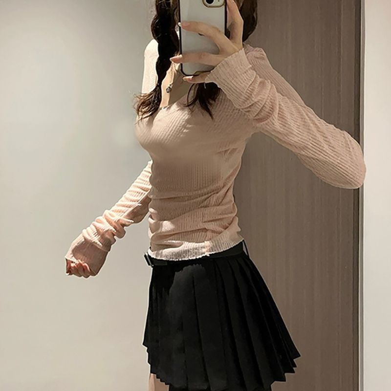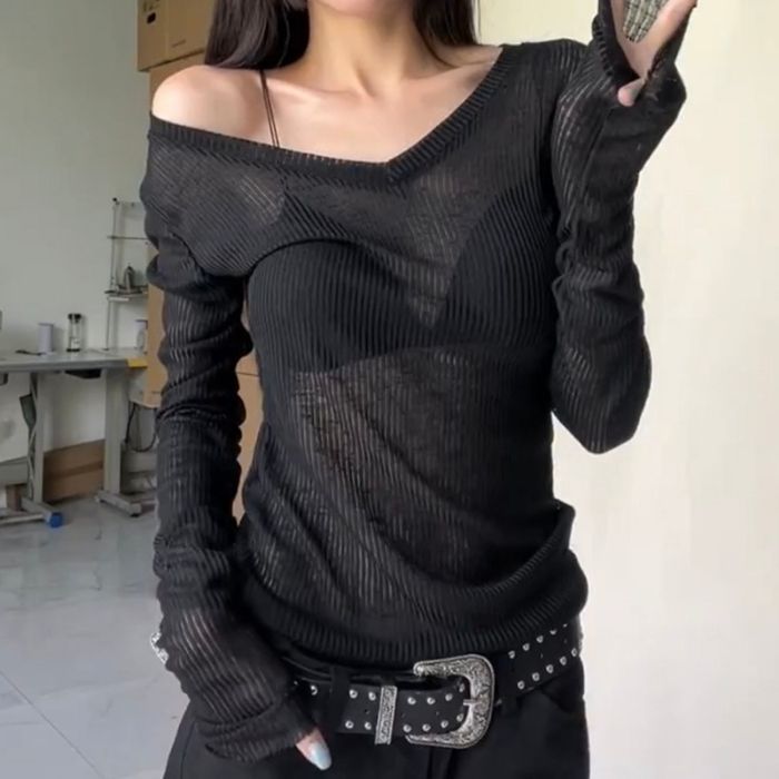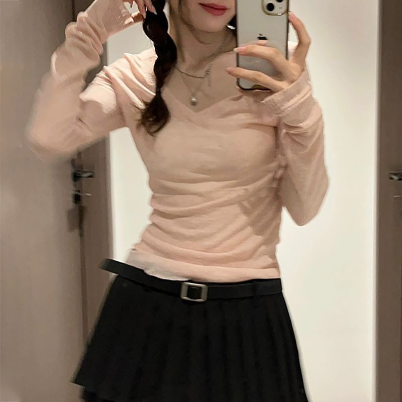 재닌 선 스크린 블라우스 미국 레트로 V 넥 긴 소매 티셔츠 여성용 얇은 순수 스파이스 소녀 틈새 내베이스 셔츠