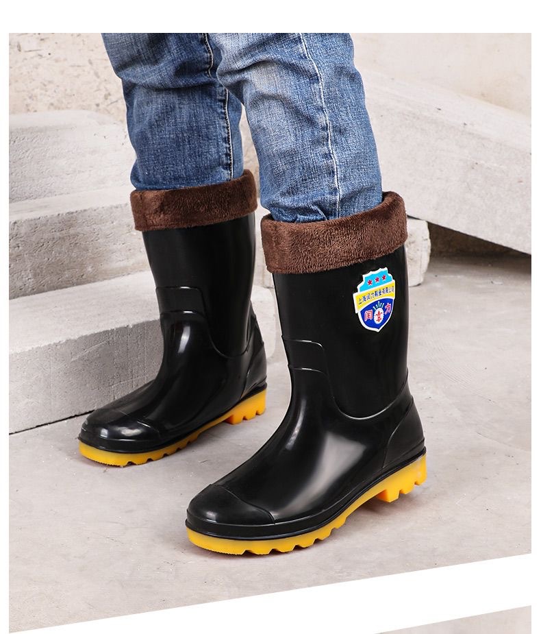 봄과 가을 남성용 높은 물 신발 초대형 방수 미끄럼 방지 우화 기모 따뜻한 긴 장화 건설 현장 노동 보호 신발스토어 가기
