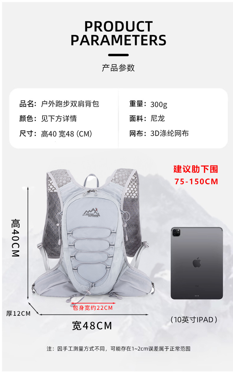 국경 간 12L 마라톤 크로스 컨트리 러닝 배낭 야외 하이킹 등산 배낭 승마 배낭 워터 백