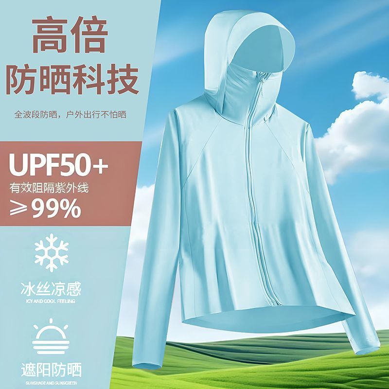 태양 보호 의류 2025 여름 얇은 얼음 실크 통기성 UV 보호 야외 낚시 후드 자켓 상단 크로스 국경스토어 가기