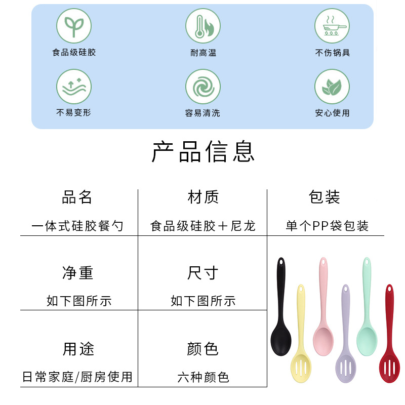 국경 원피스 실리콘 스푼 식품 등급 요리 실리콘 소쿠리 주방 고밀도 숟가락 샐러드 혼합 숟가락