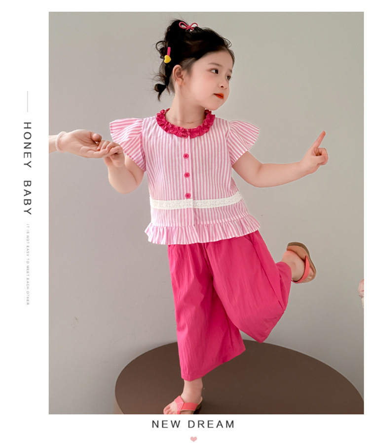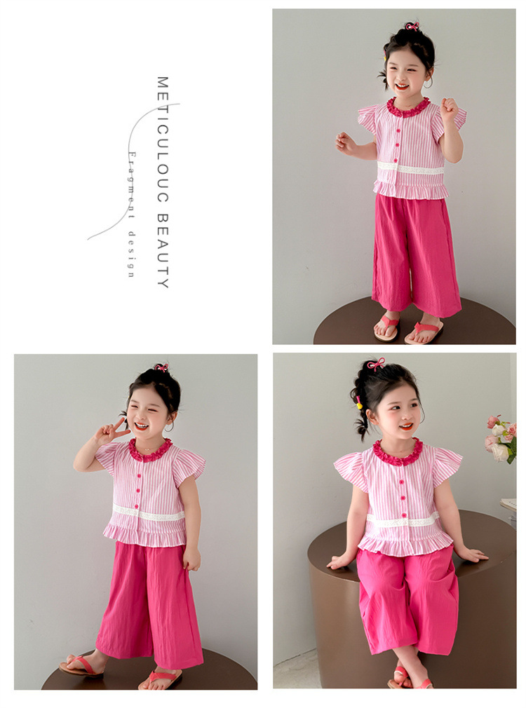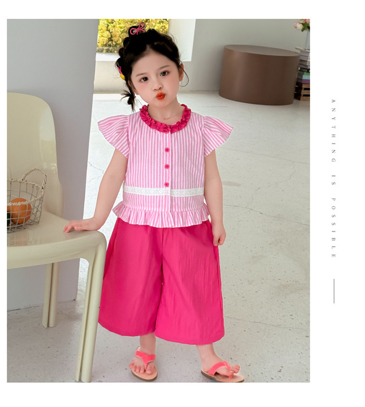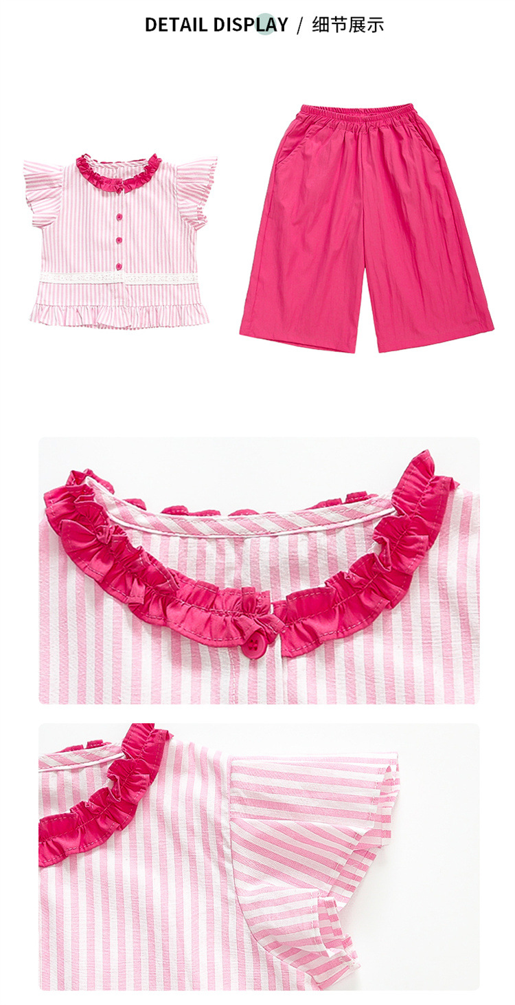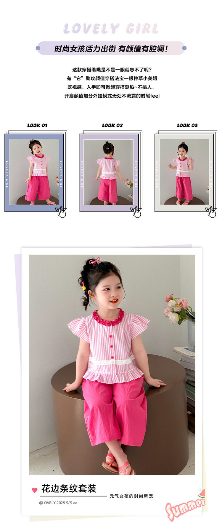 소녀 핑크 줄무늬 세트 2025 여름 새로운 패션 소녀 세련된 투피스 중소 어린이 여름 원피스스토어 가기
