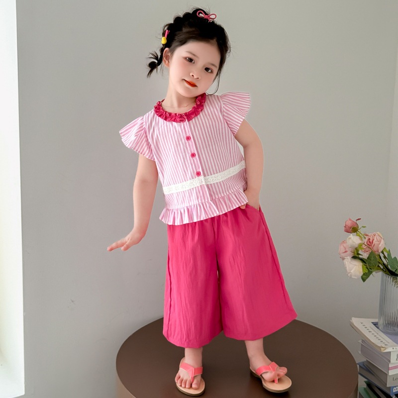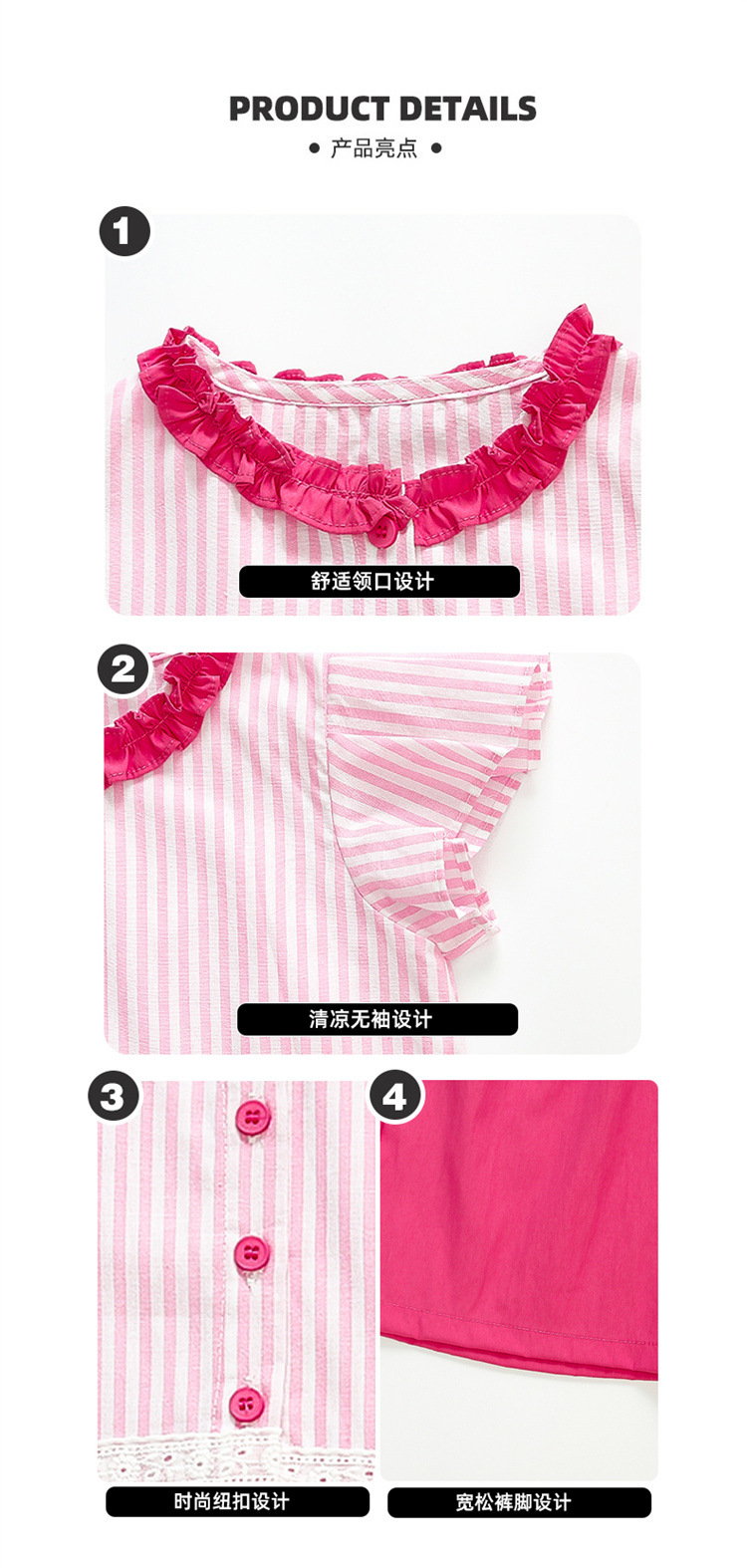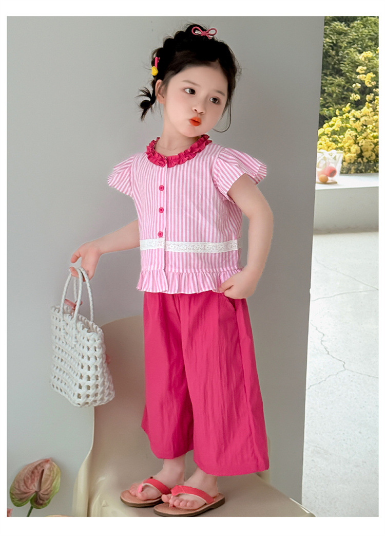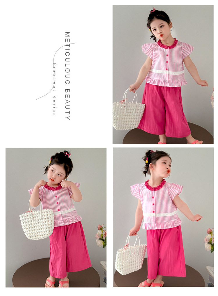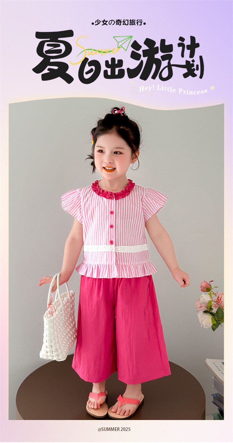 소녀 핑크 줄무늬 세트 2025 여름 새로운 패션 소녀 세련된 투피스 중소 어린이 여름 원피스스토어 가기